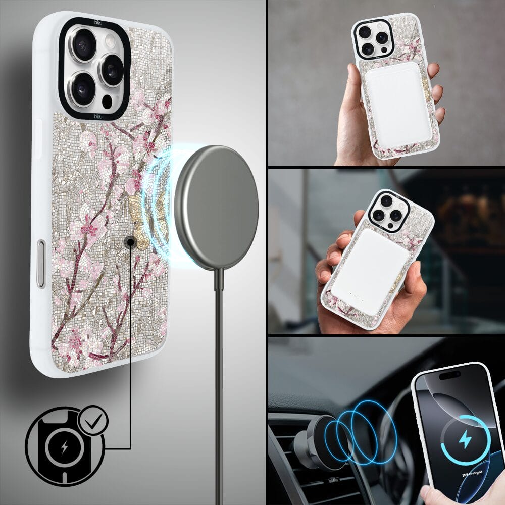Etui do iPhone 16 Pro IBIZU DropGuard Matt z MagSafe, Modern Classics, Mozaika kwitnącej wiśni