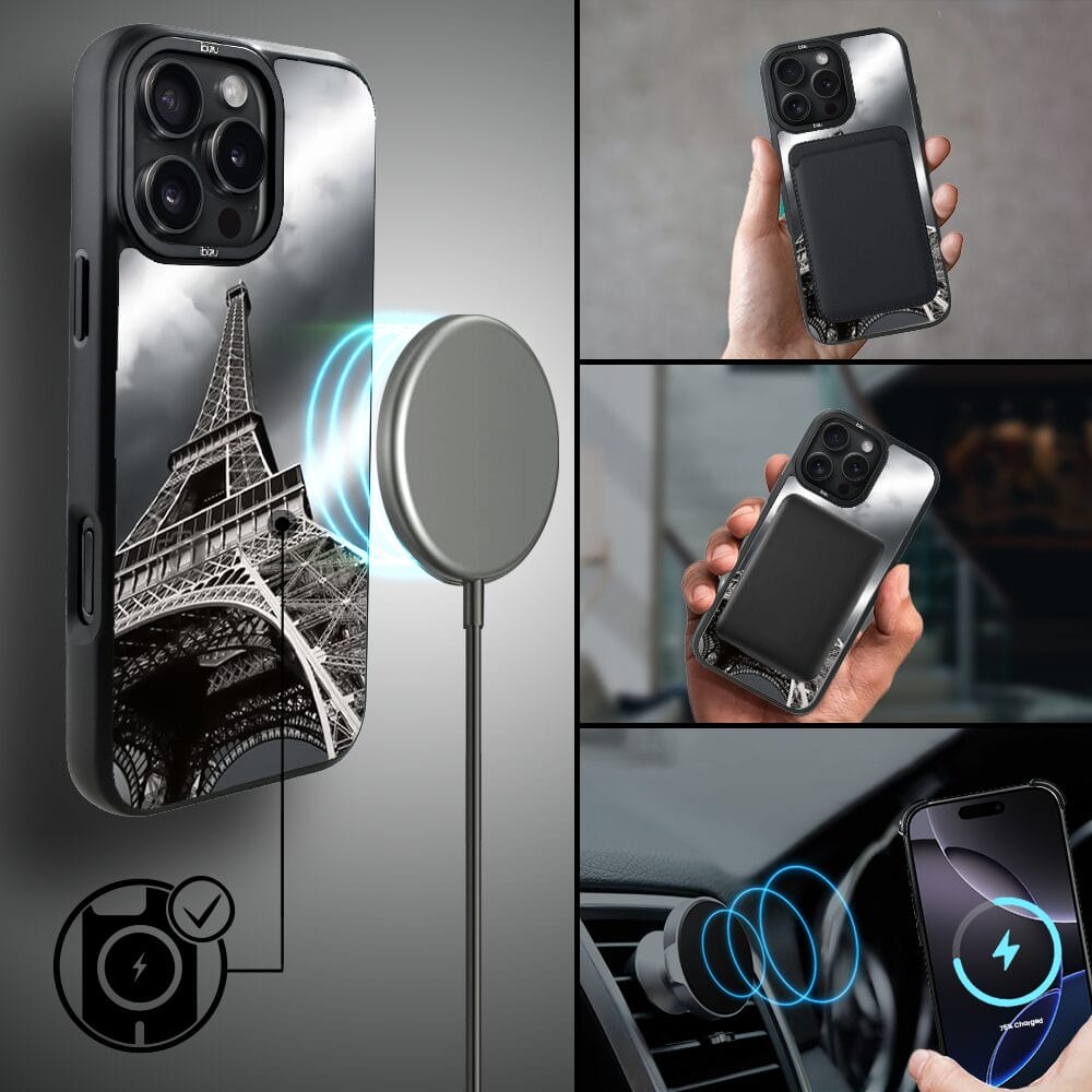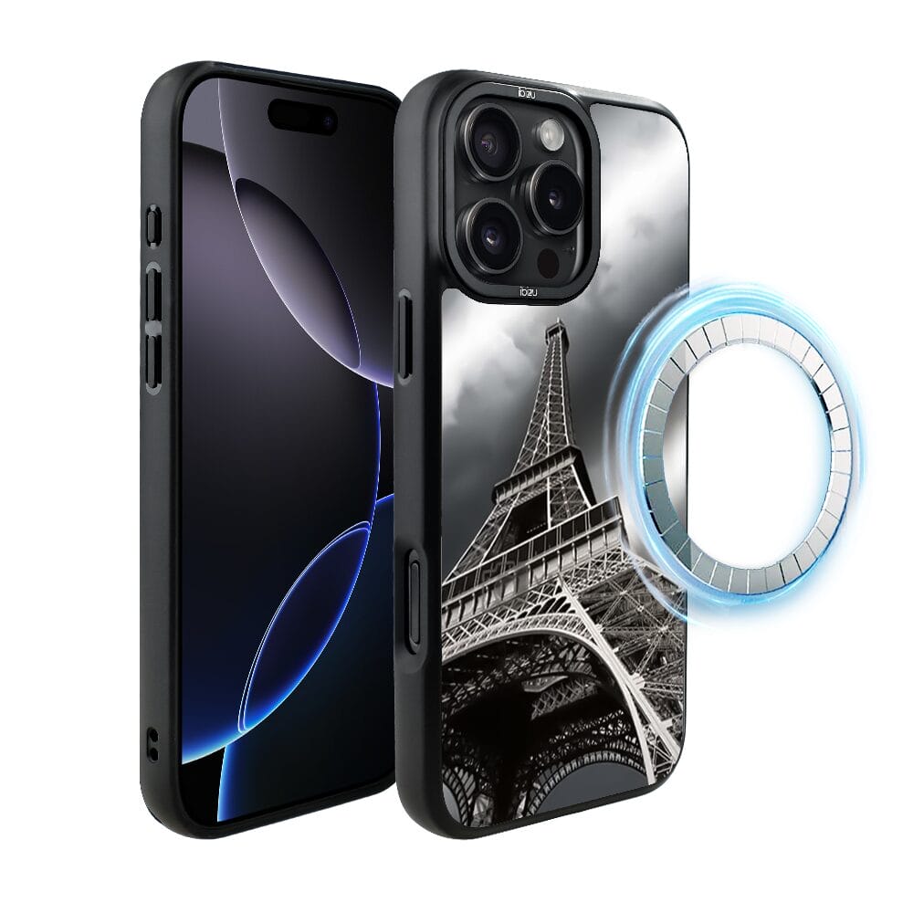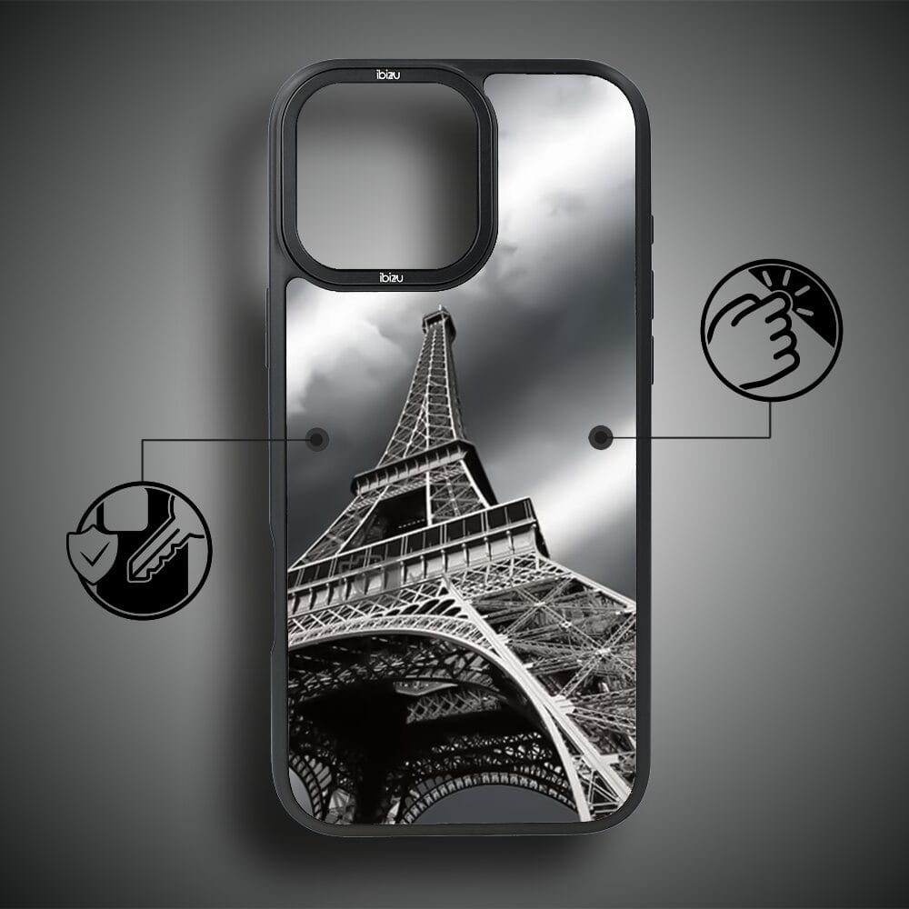 Etui do iPhone 16 Pro IBIZU DropGuard Matt z MagSafe, Noir City, Wieża Eiffla