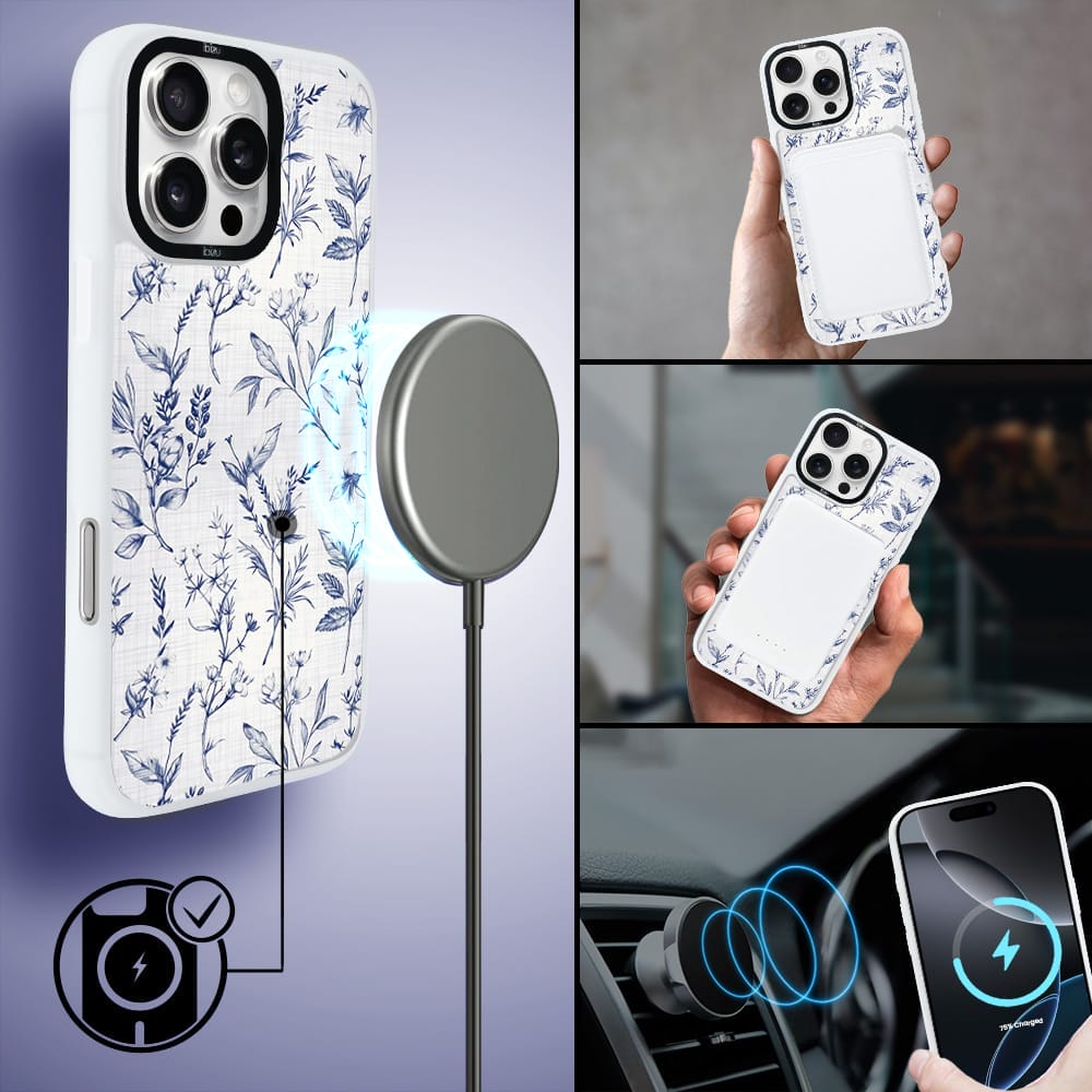 Etui do iPhone 16 Pro IBIZU DropGuard Matt z MagSafe, Pastel Bloom, Lazurowe szepty