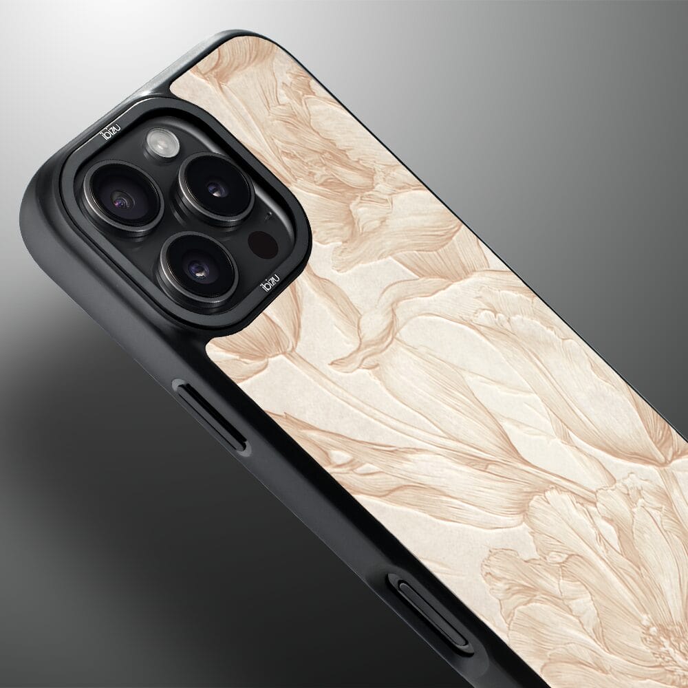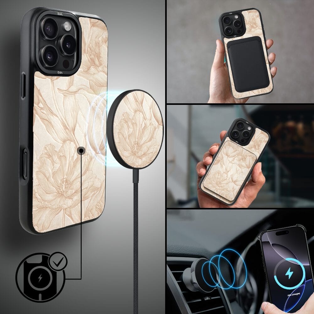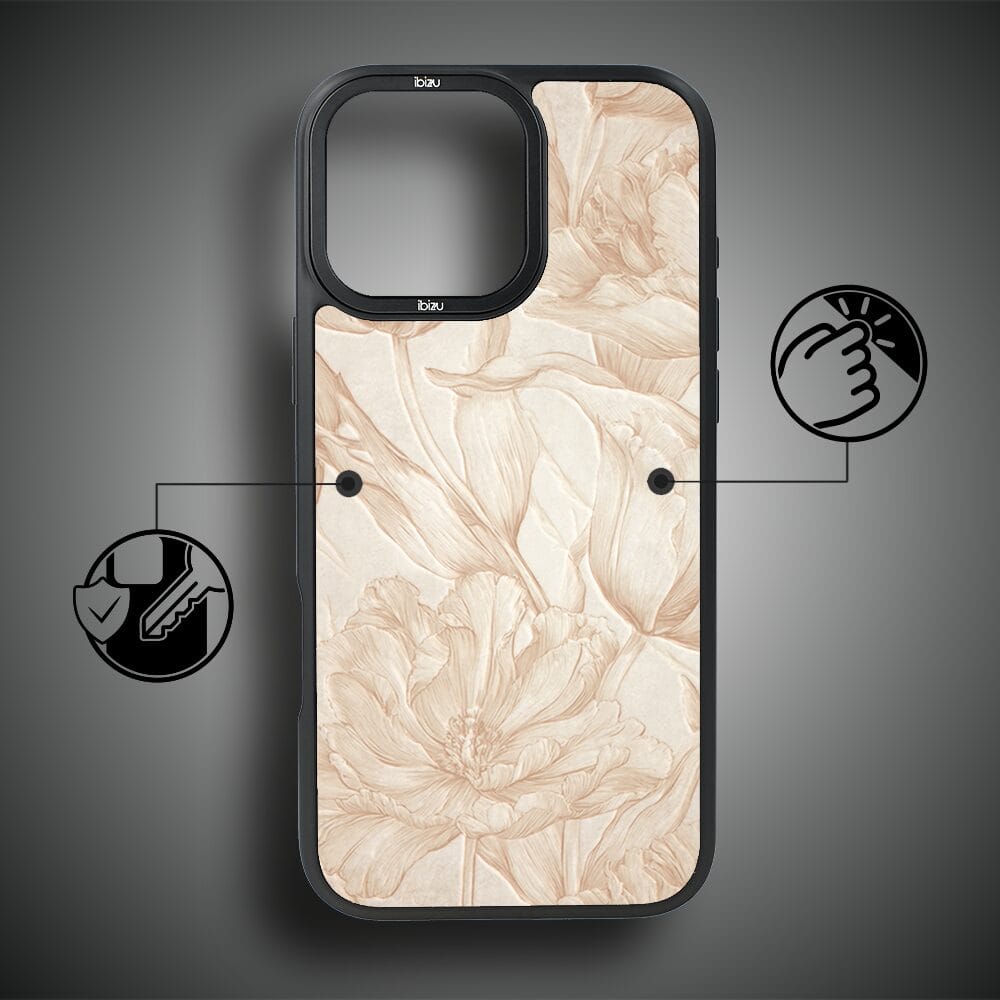 Etui do iPhone 16 Pro IBIZU DropGuard Matt z MagSafe, Relief Garden, Botaniczny biskwit