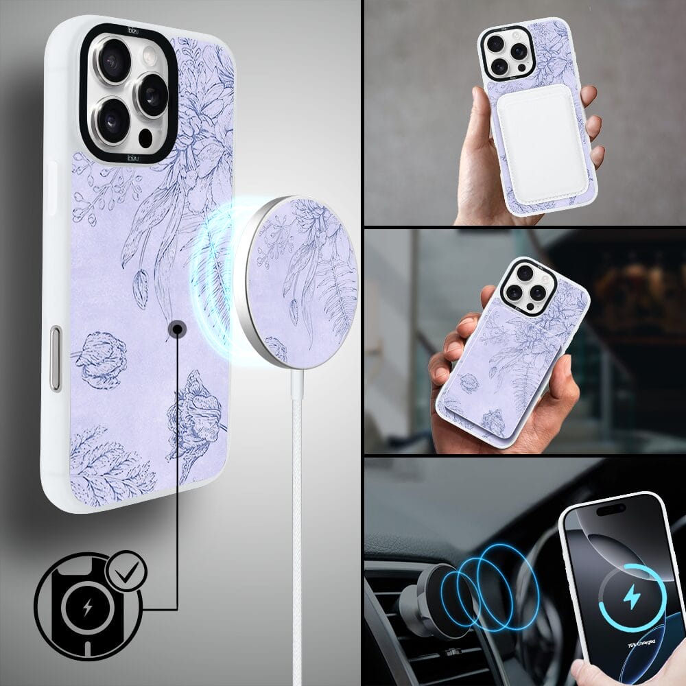 Etui do iPhone 16 Pro IBIZU DropGuard Matt z MagSafe, Relief Garden, Kwiatowa płaskorzeźba, białe