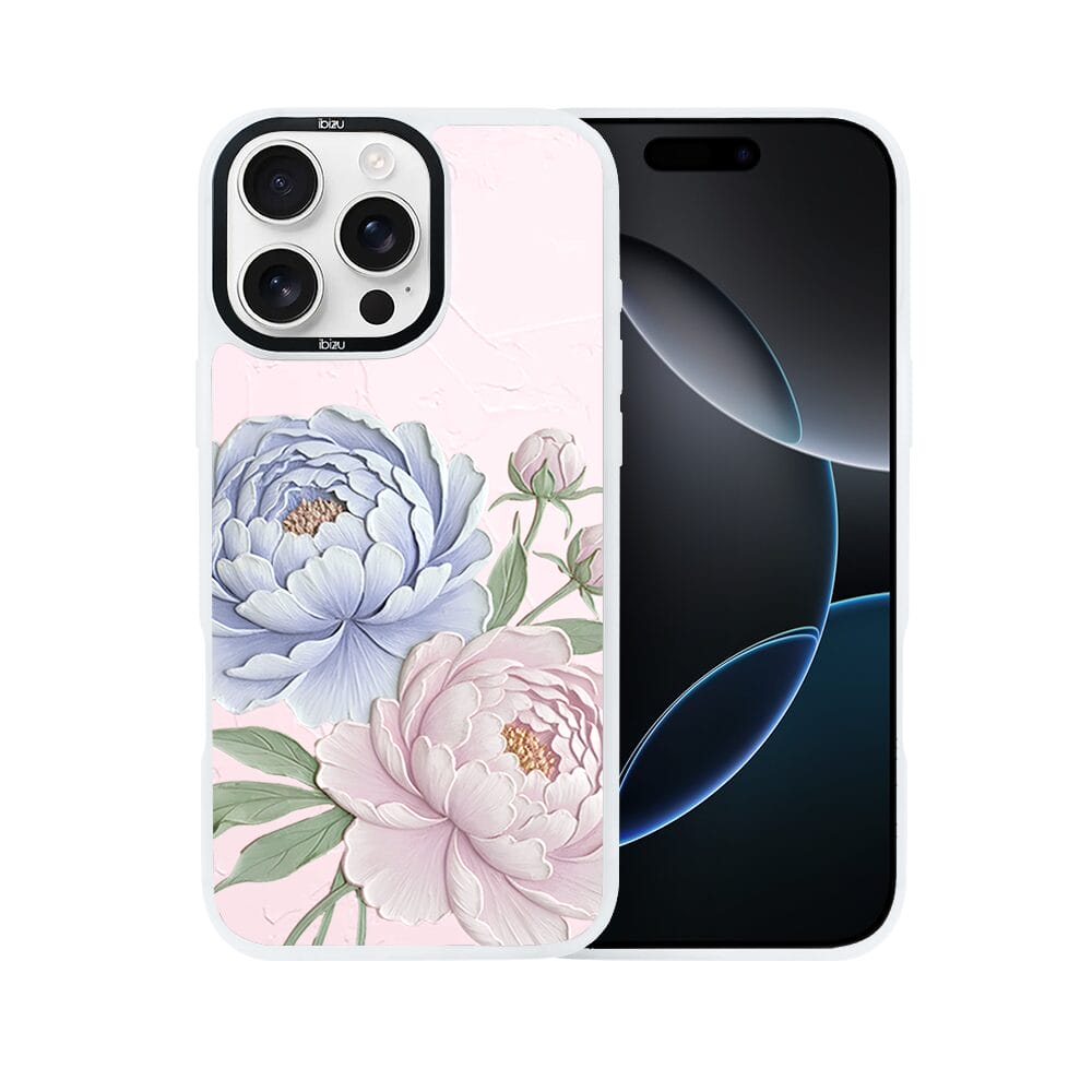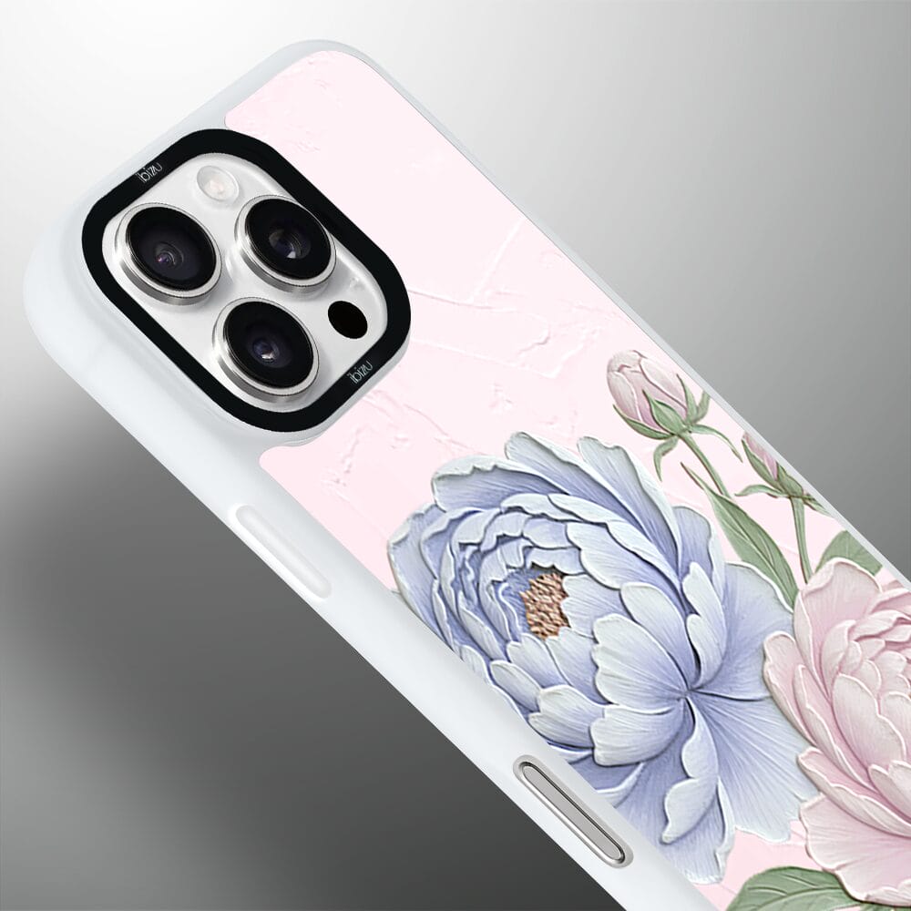 Etui do iPhone 16 Pro IBIZU DropGuard Matt z MagSafe, Relief Garden, Piwoniowy róż, białe