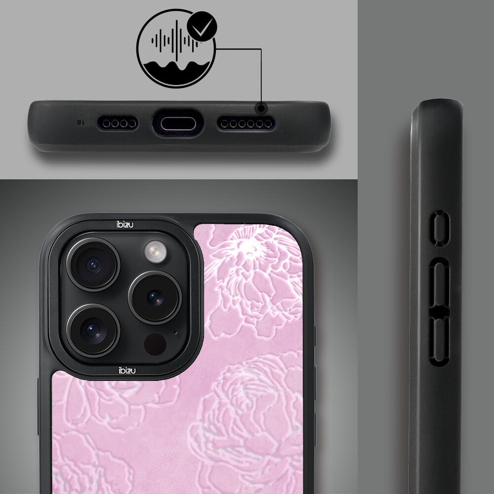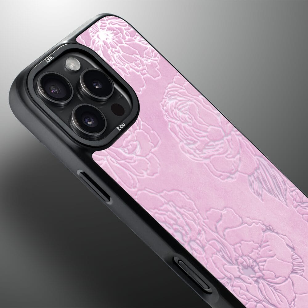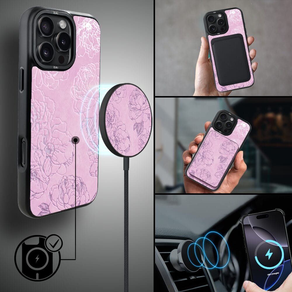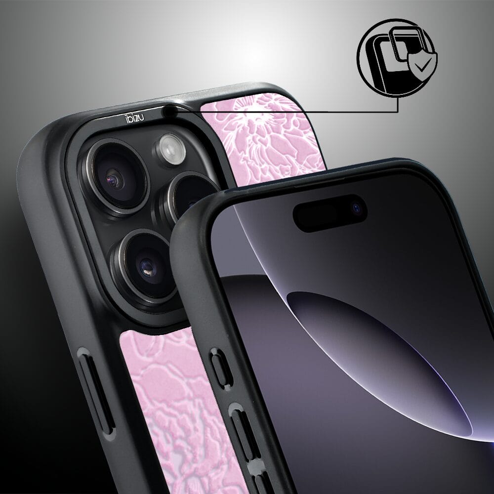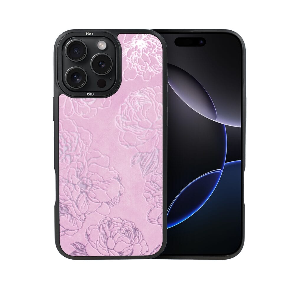 Etui do iPhone 16 Pro IBIZU DropGuard Matt z MagSafe, Relief Garden, Różowe piwonie