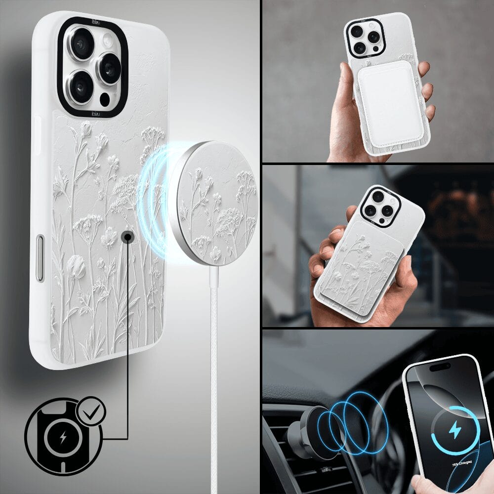Etui do iPhone 16 Pro IBIZU DropGuard Matt z MagSafe, Relief Garden, Suszone kwiaty polne