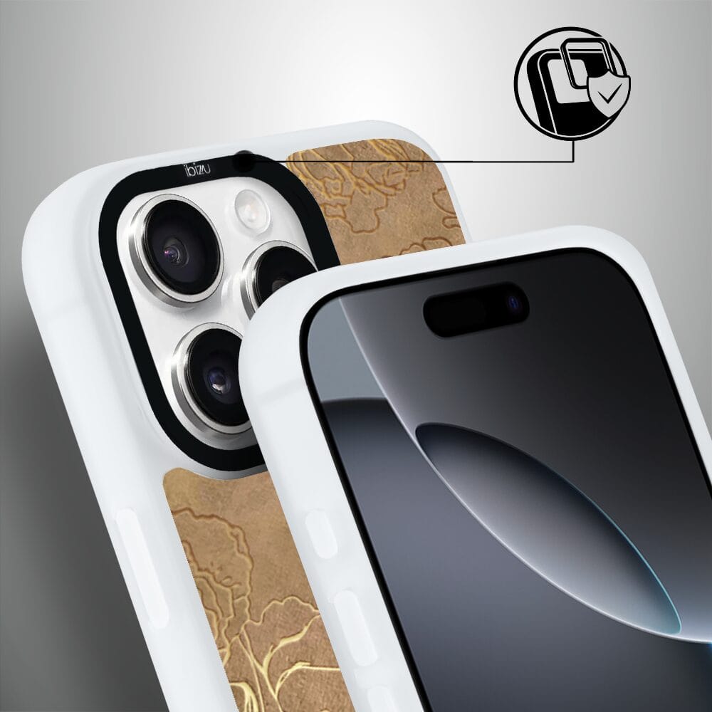 Etui do iPhone 16 Pro IBIZU DropGuard Matt z MagSafe, Relief Garden, Złote piwonie, białe