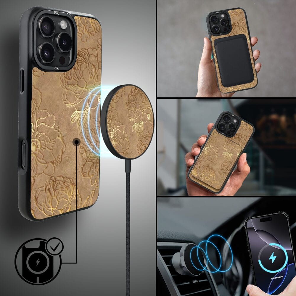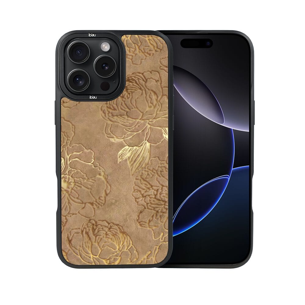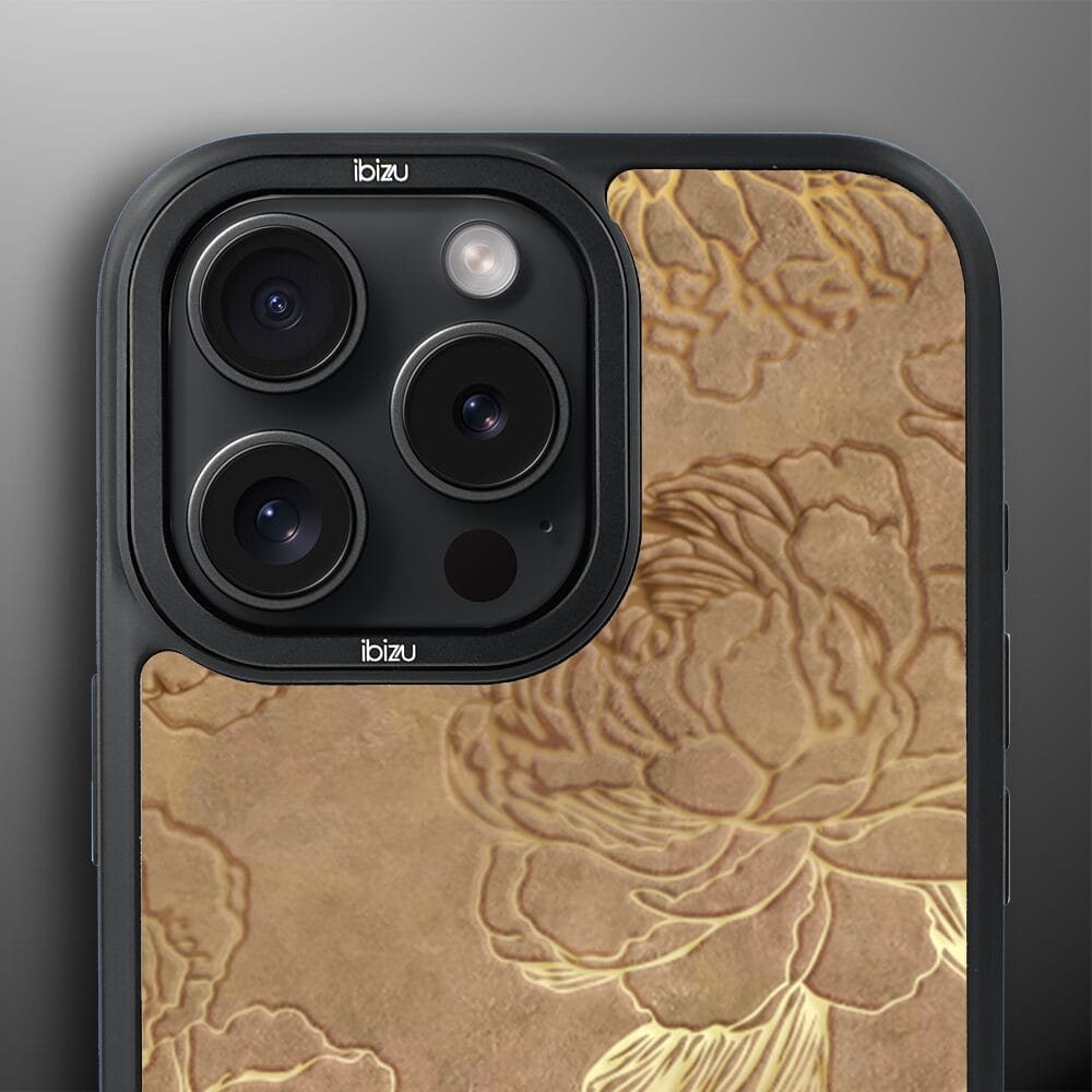 Etui do iPhone 16 Pro IBIZU DropGuard Matt z MagSafe, Relief Garden, Złote piwonie