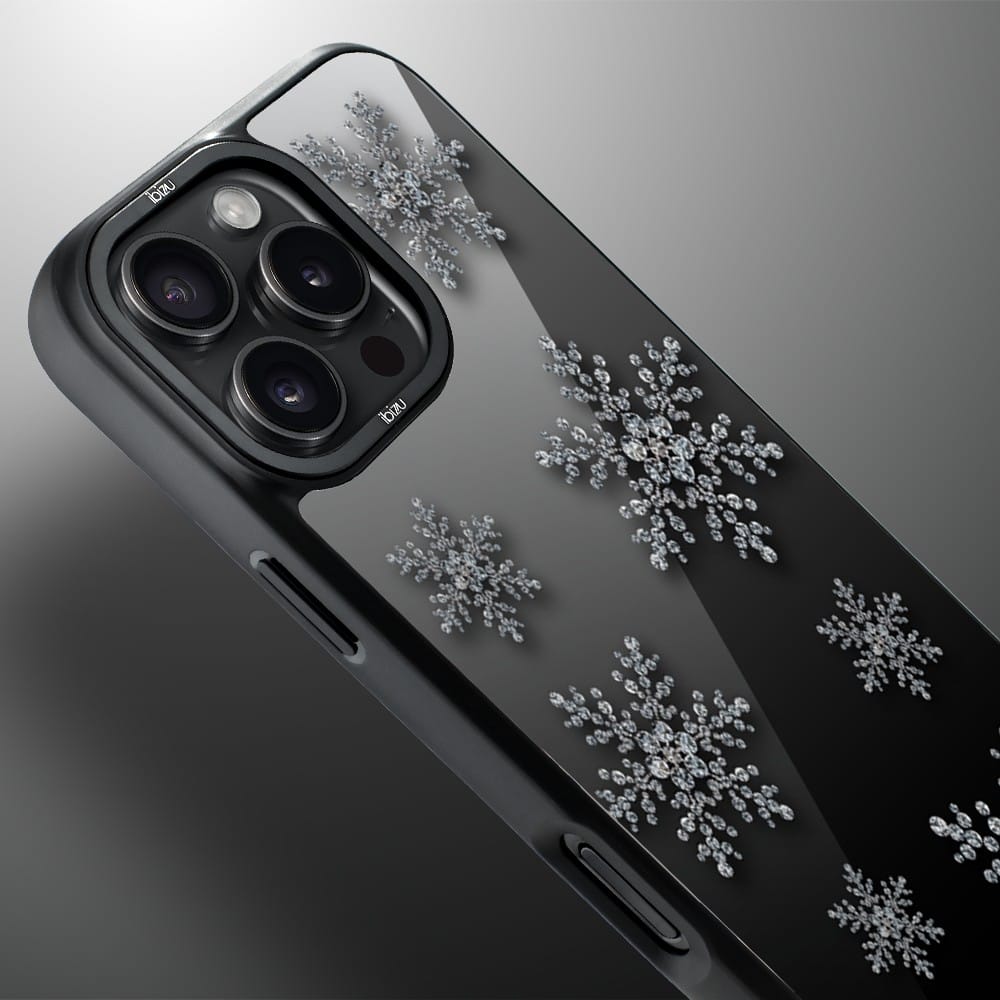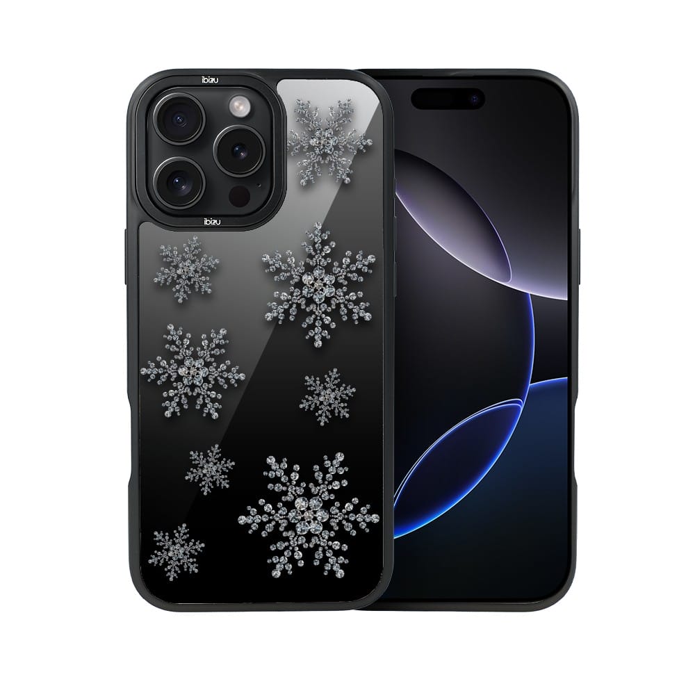 Etui do iPhone 16 Pro IBIZU DropGuard Matt z MagSafe, Zimowa magia, Płatki śniegu na czarnym lustrze
