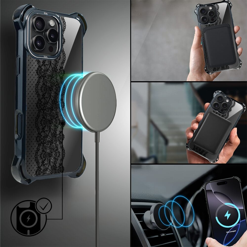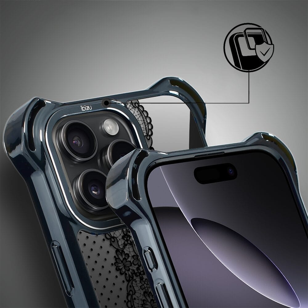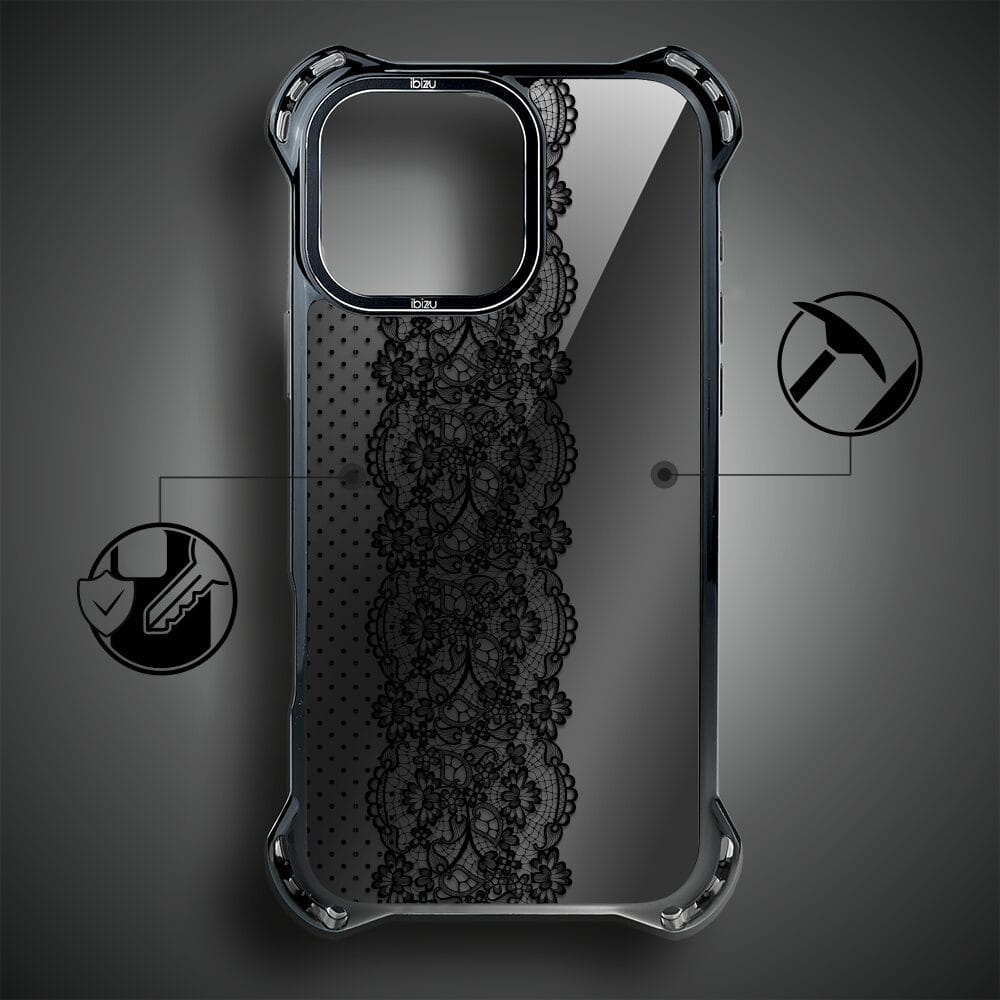 Etui do iPhone 16 Pro IBIZU DropGuard Ultra z MagSafe, Midnight, Ornamentowa koronka