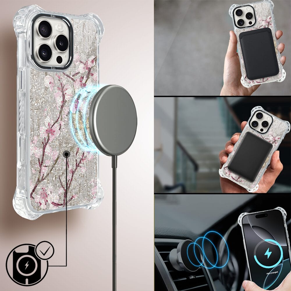Etui do iPhone 16 Pro IBIZU DropGuard Ultra z MagSafe, Modern Classics, Mozaika kwitnącej wiśni