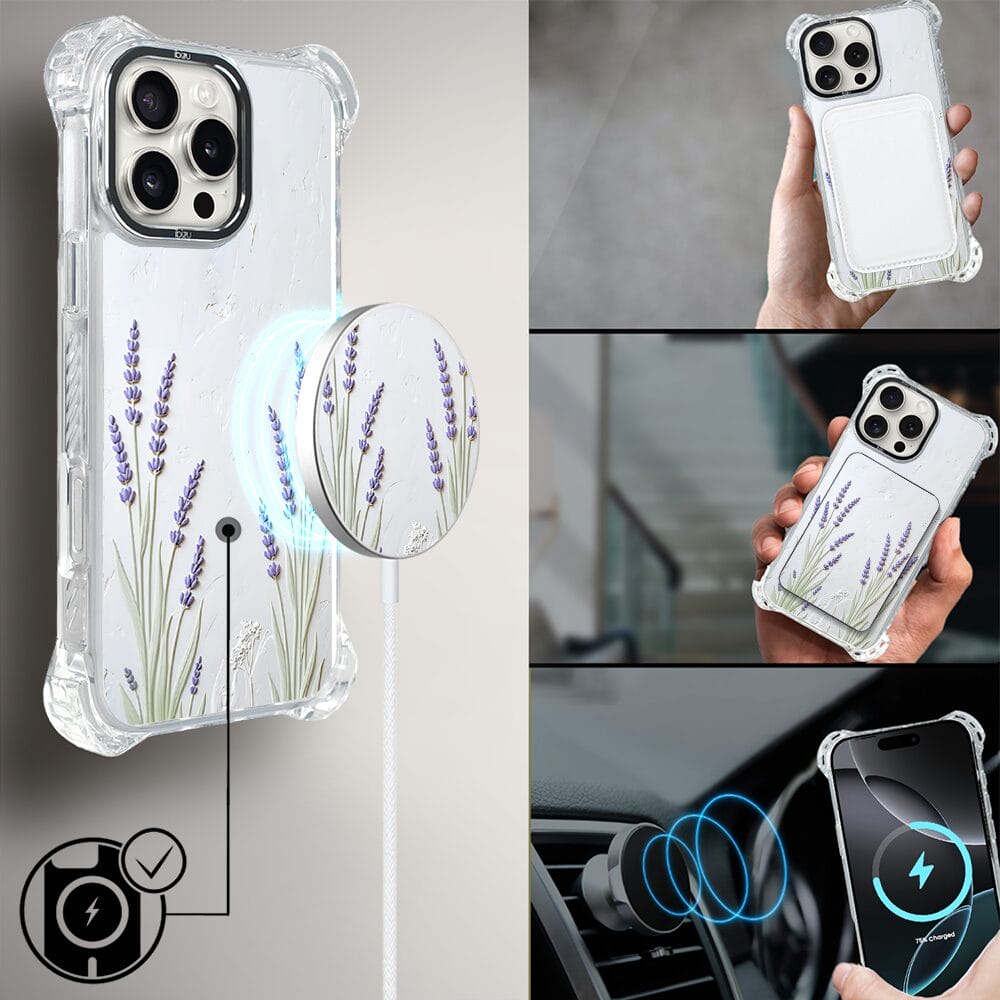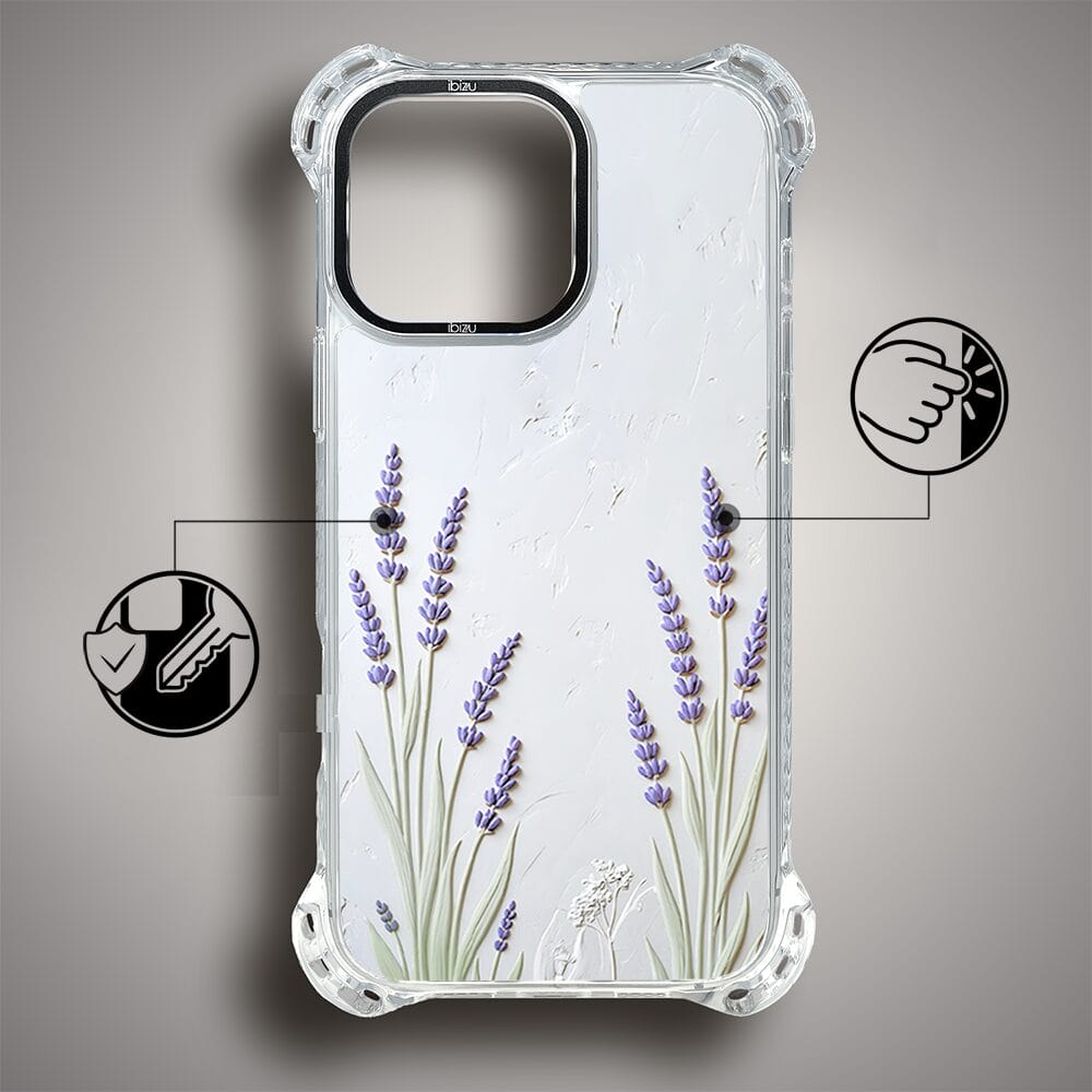 Etui do iPhone 16 Pro IBIZU DropGuard Ultra z MagSafe, Relief Garden, Prowansalska lawenda