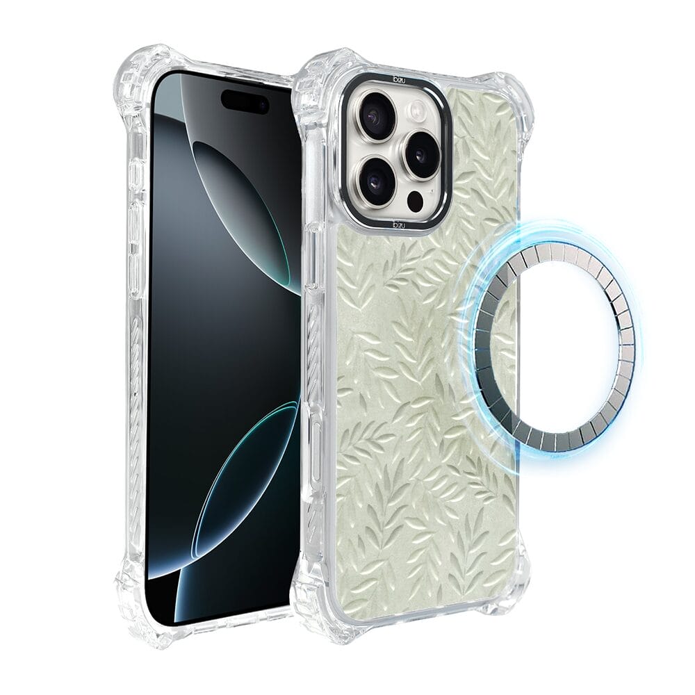 Etui do iPhone 16 Pro IBIZU DropGuard Ultra z MagSafe, Relief Garden, Ślad oliwki