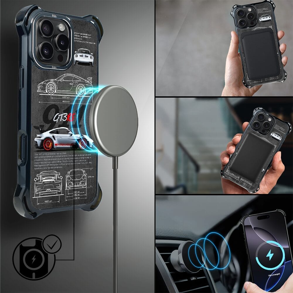Etui do iPhone 16 Pro IBIZU DropGuard Ultra z MagSafe, TechDrive, 911 GT3 RS