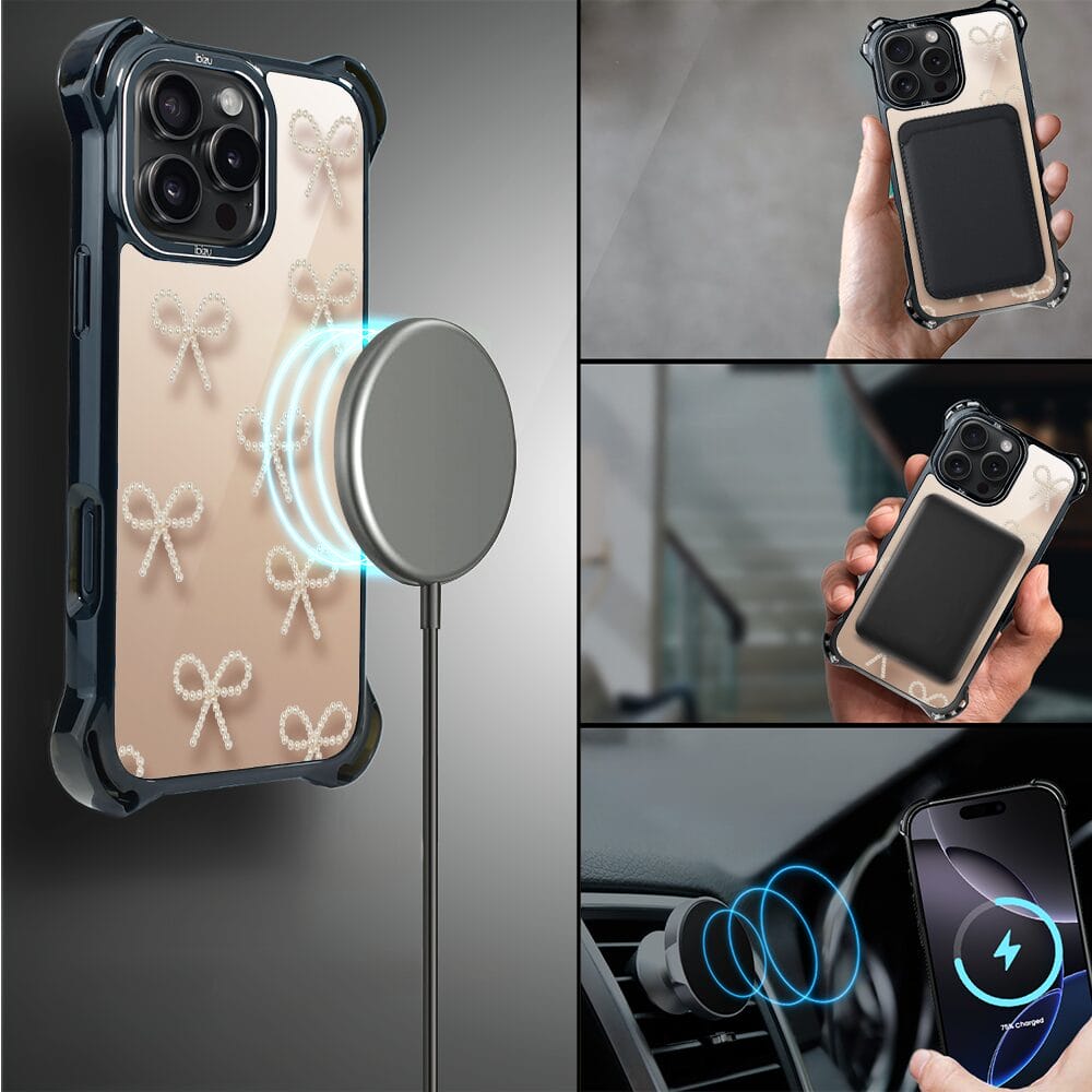 Etui do iPhone 16 Pro IBIZU DropGuard Ultra z MagSafe, Zimowa magia, Perłowe kokardki