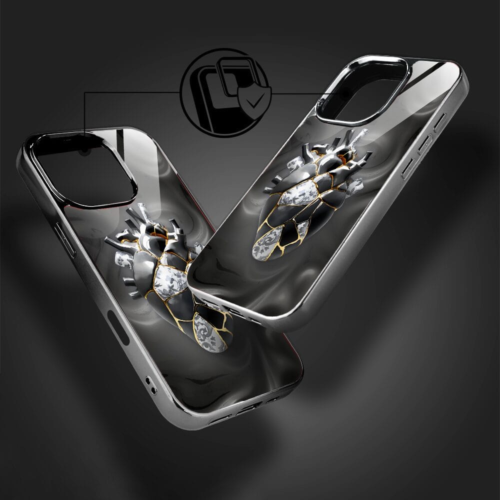 Etui do iPhone 16 Pro IBIZU Elite Glass z MagSafe, Kintsugi Art, porcelanowe serce, czarne