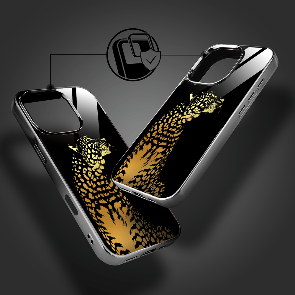 Etui do iPhone 16 Pro IBIZU Elite Glass z MagSafe Golden Midnight, Lampart, czarne