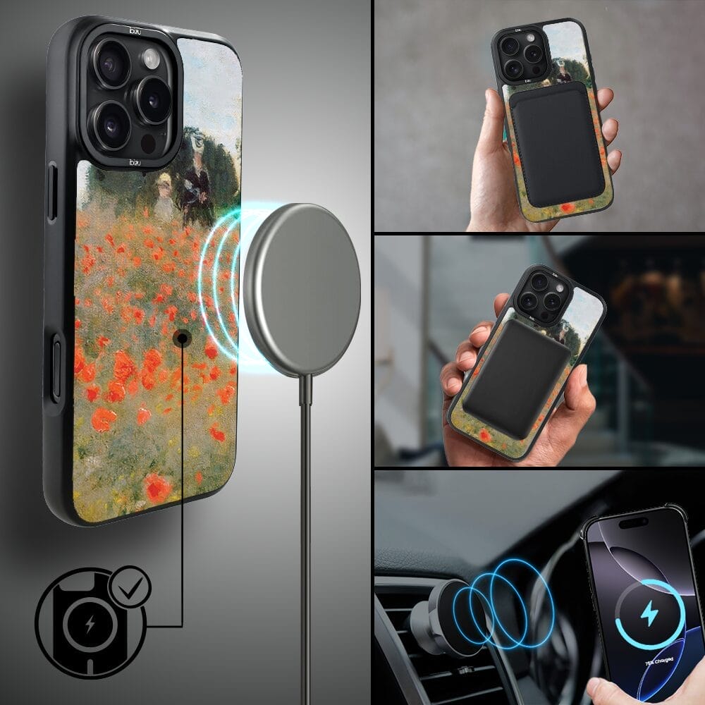 Etui do iPhone 16 Pro Max IBIZU DropGuard Matt z MagSafe, Claude Monet, pole maków