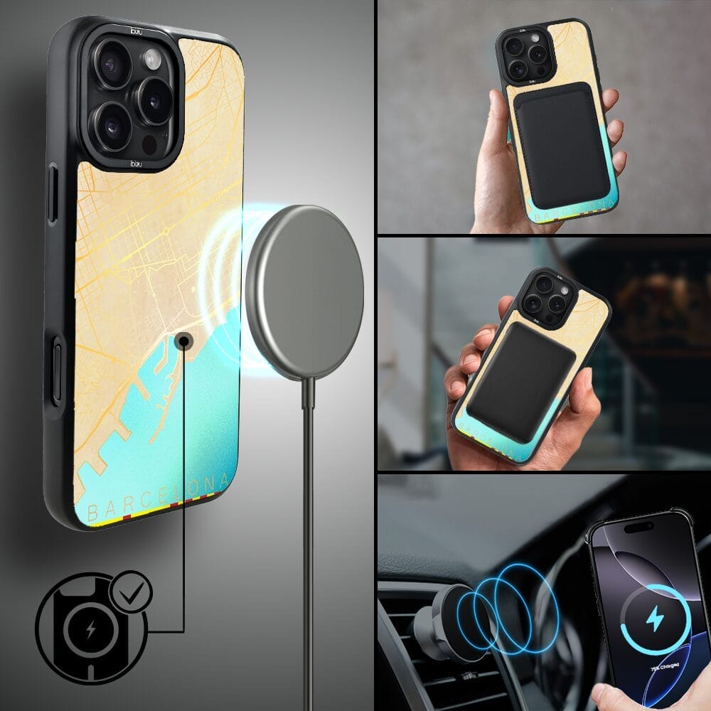 Etui do iPhone 16 Pro Max IBIZU DropGuard Matt z MagSafe, Mapy Świata, Barcelona