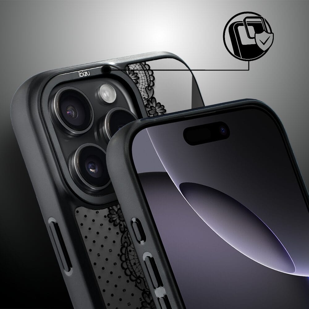 Etui do iPhone 16 Pro Max IBIZU DropGuard Matt z MagSafe, Midnight, Ornamentowa koronka