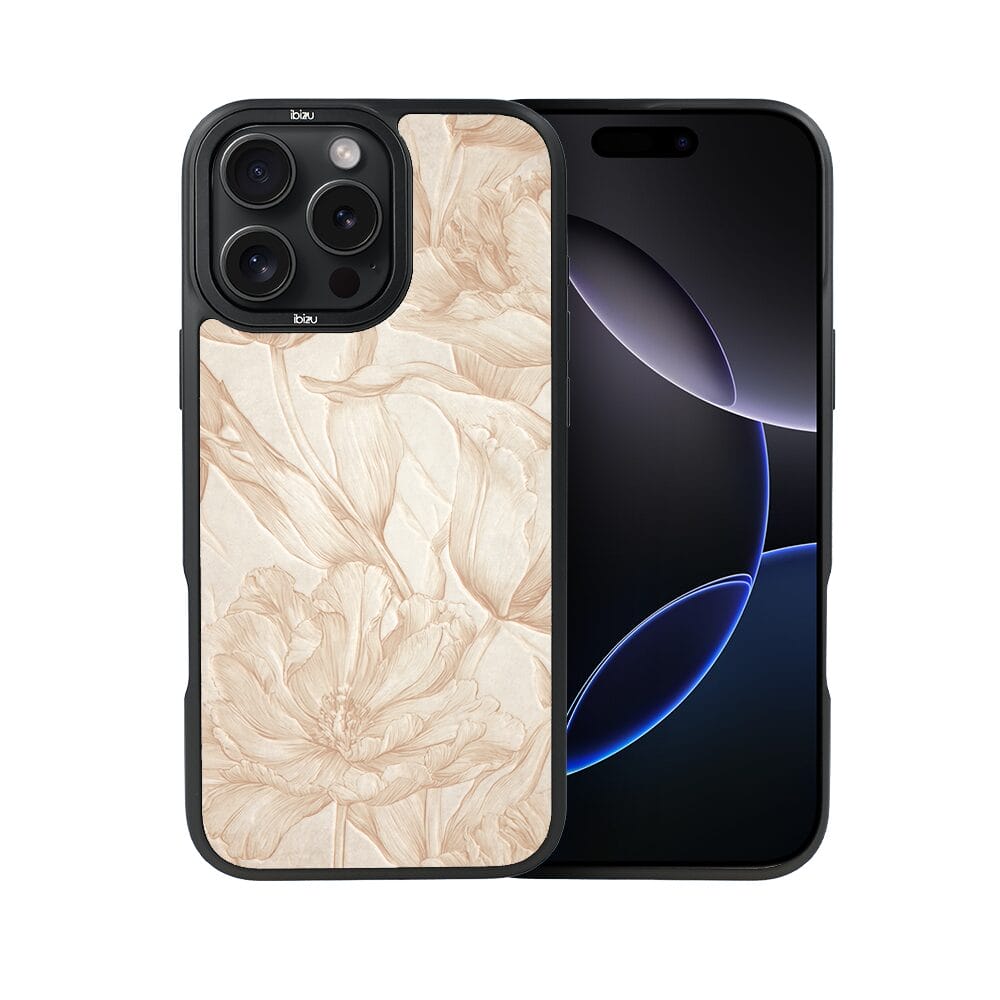 Etui do iPhone 16 Pro Max IBIZU DropGuard Matt z MagSafe, Relief Garden, Botaniczny biskwit