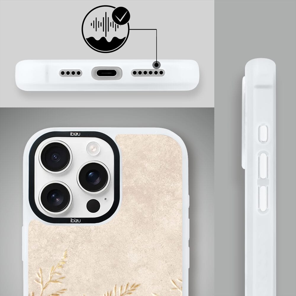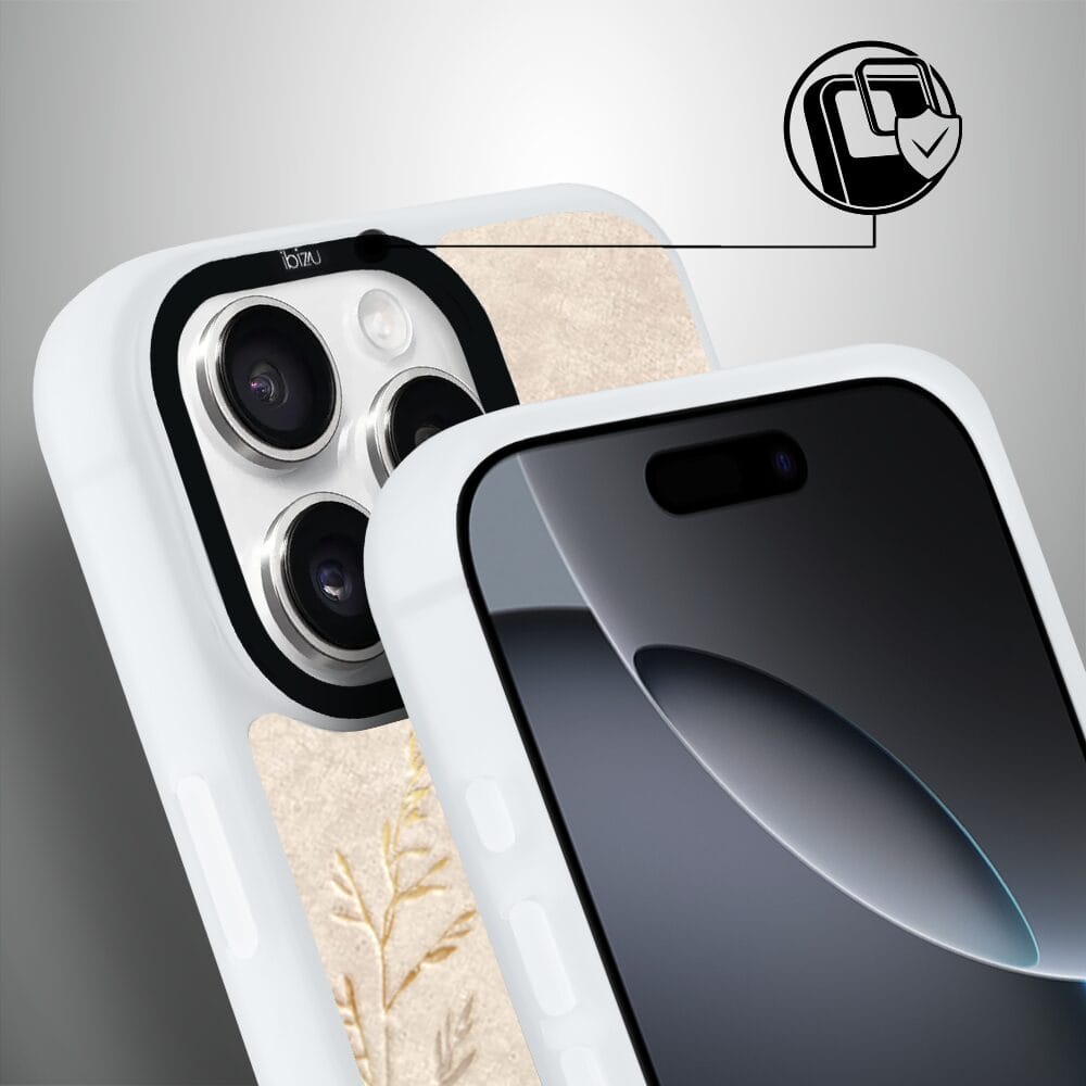 Etui do iPhone 16 Pro Max IBIZU DropGuard Matt z MagSafe, Relief Garden, Kłosy z piaskowca, białe