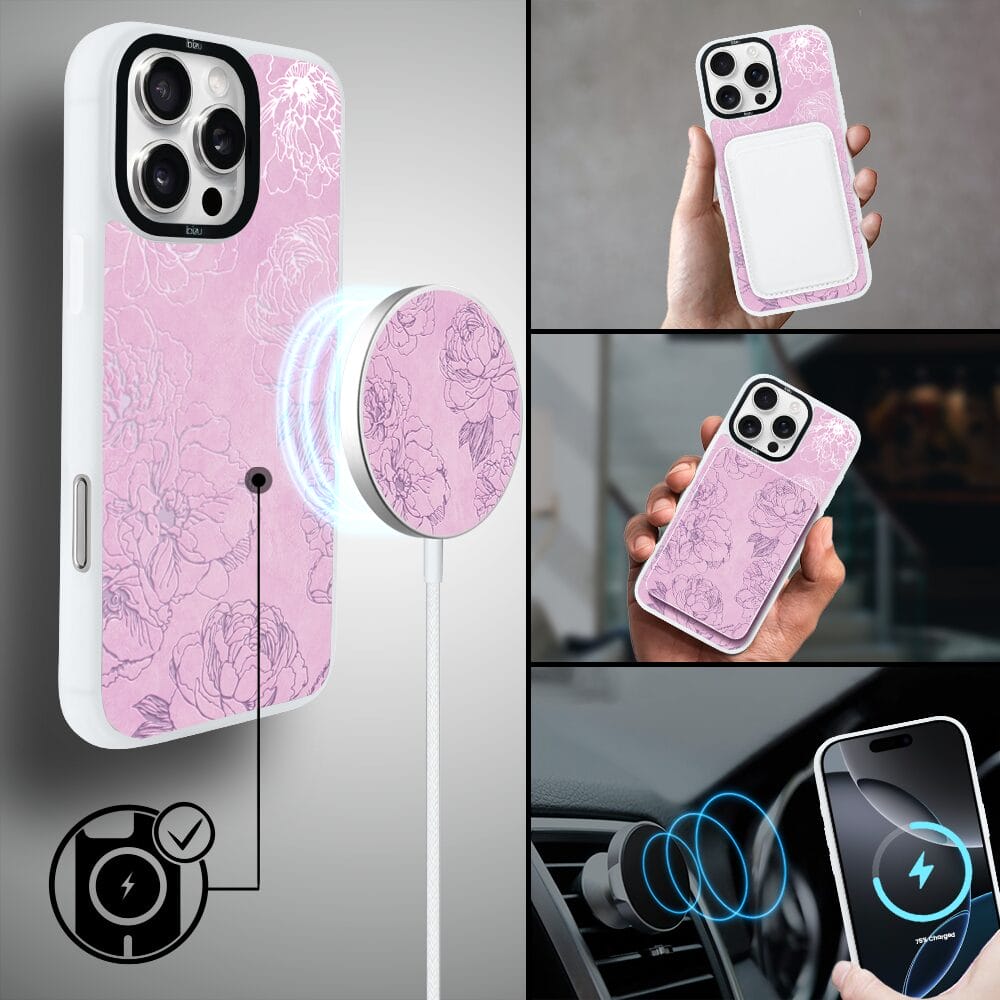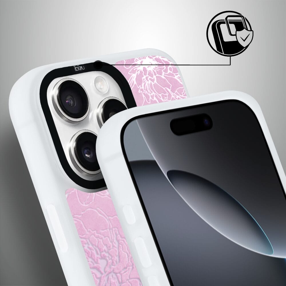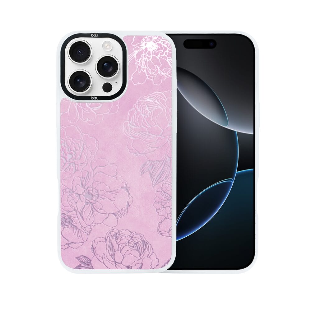 Etui do iPhone 16 Pro Max IBIZU DropGuard Matt z MagSafe, Relief Garden, Różowe piwonie, białe