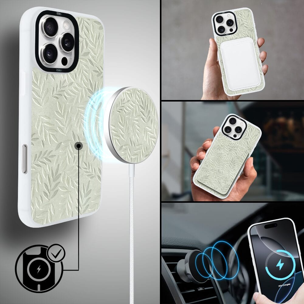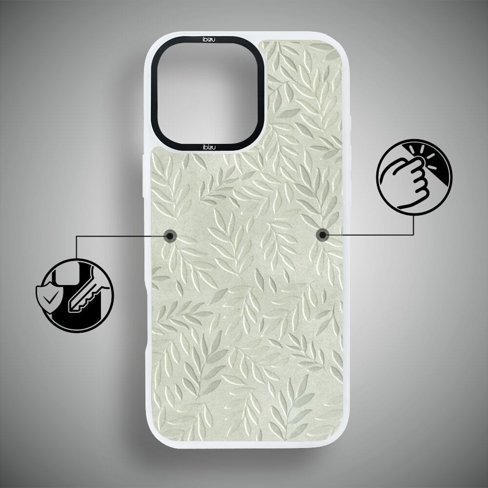 Etui do iPhone 16 Pro Max IBIZU DropGuard Matt z MagSafe, Relief Garden, Ślad oliwki, białe