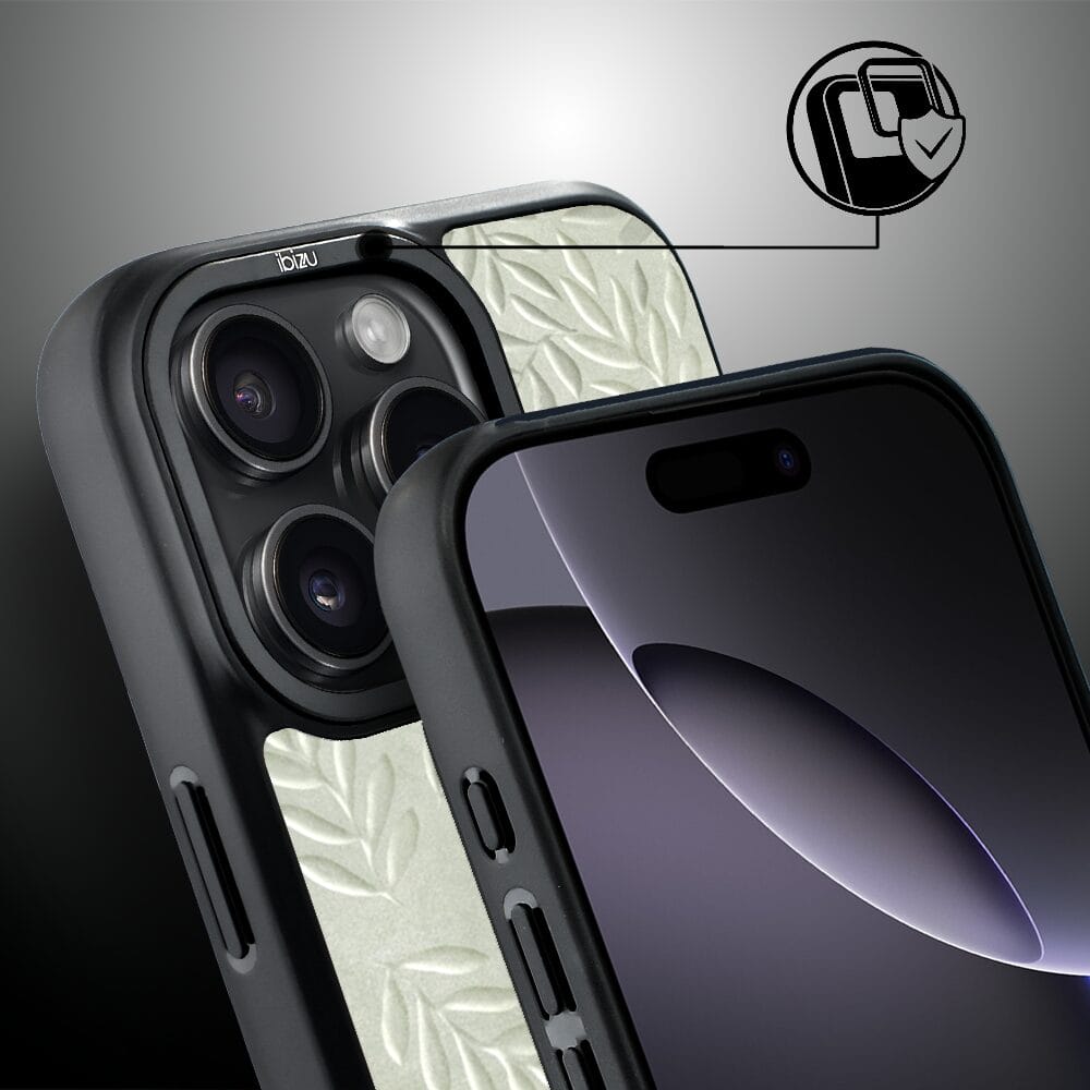 Etui do iPhone 16 Pro Max IBIZU DropGuard Matt z MagSafe, Relief Garden, Ślad oliwki