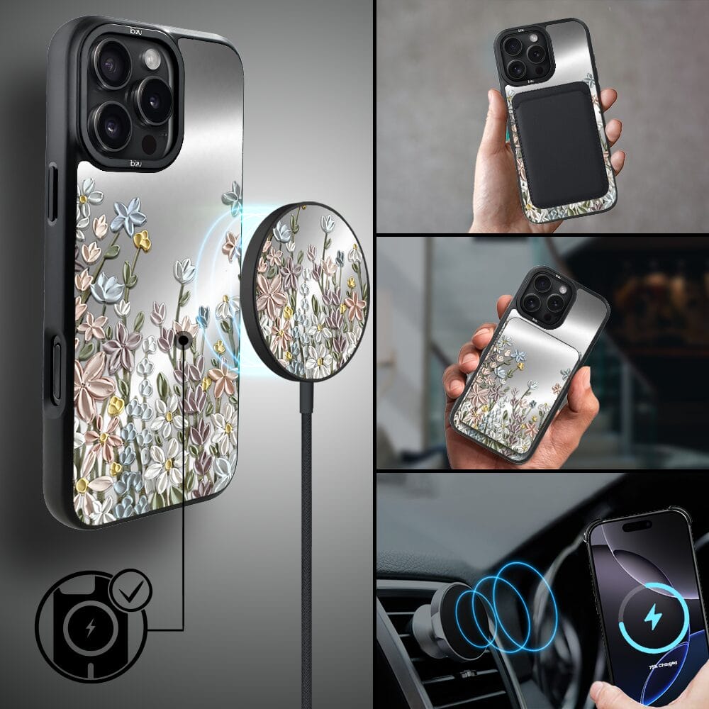 Etui do iPhone 16 Pro Max IBIZU DropGuard Matt z MagSafe, Relief Garden, Wiosenna łąka