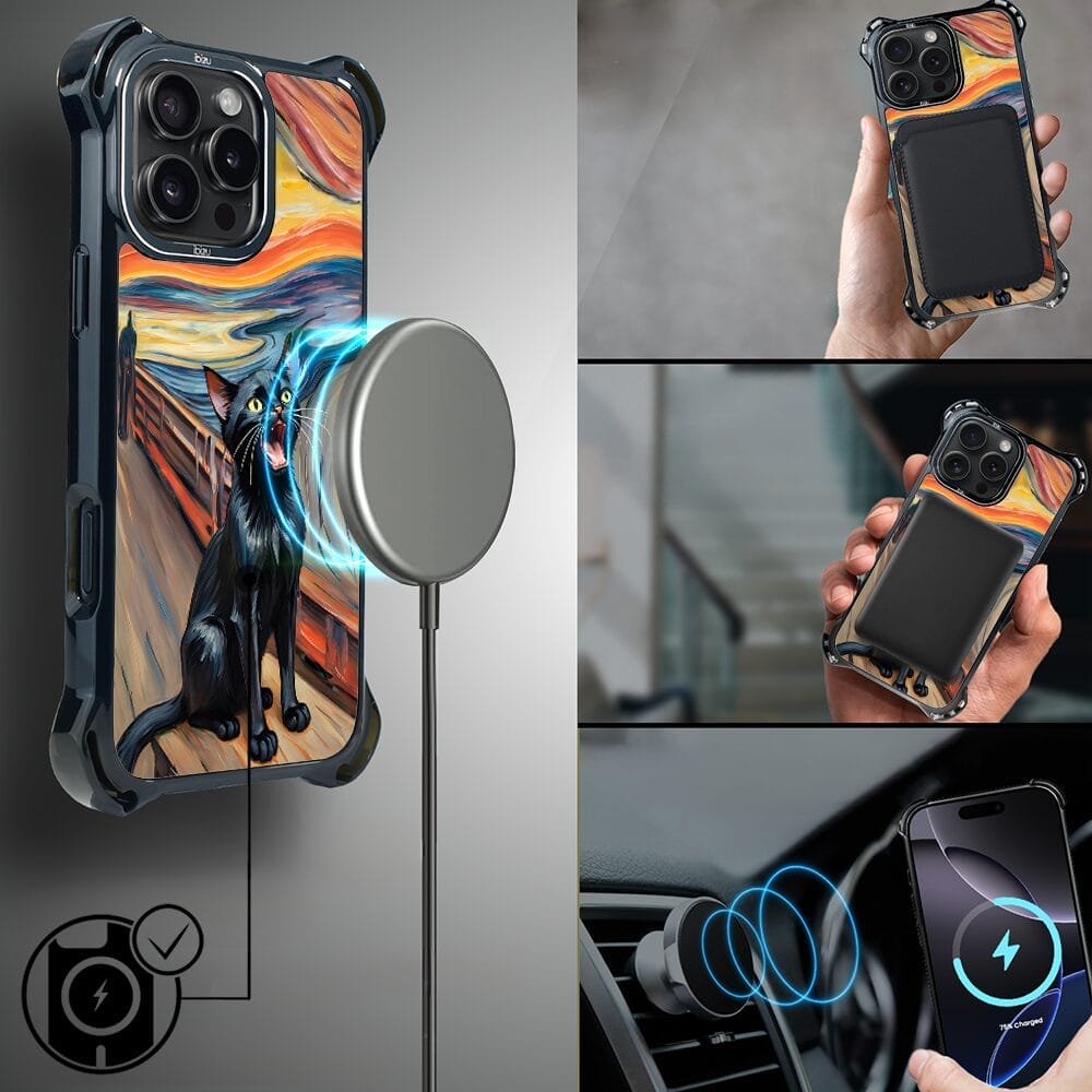 Etui do iPhone 16 Pro Max IBIZU DropGuard Ultra z MagSafe, Edvard Munch, krzyk kota