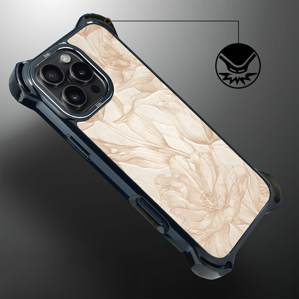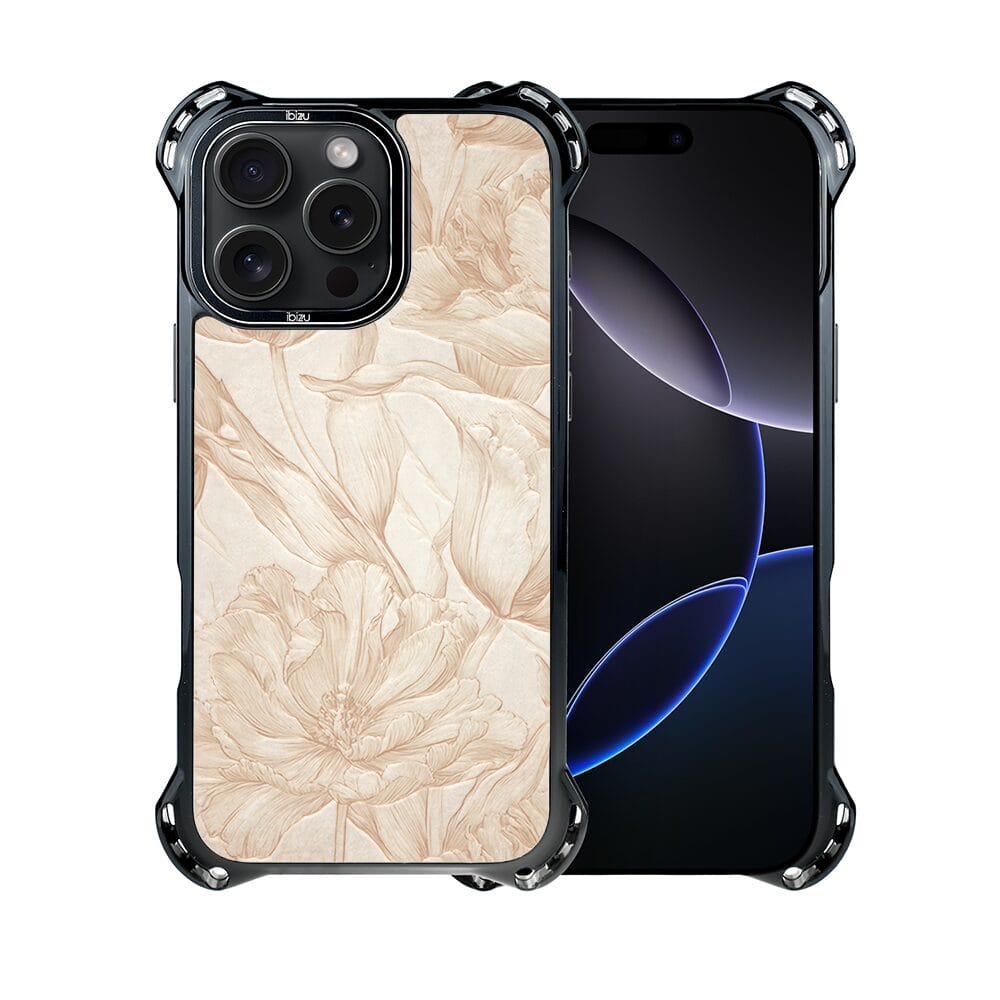 Etui do iPhone 16 Pro Max IBIZU DropGuard Ultra z MagSafe, Relief Garden, Botaniczny biskwit