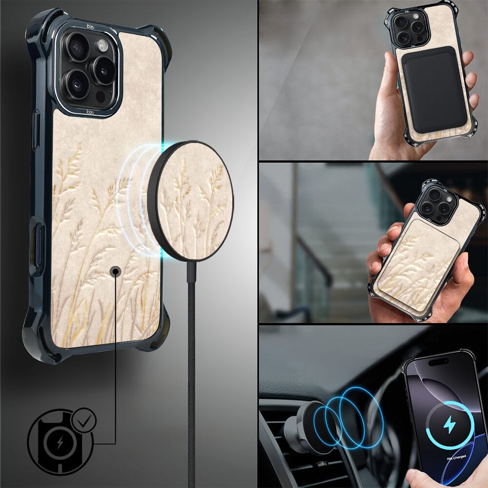 Etui do iPhone 16 Pro Max IBIZU DropGuard Ultra z MagSafe, Relief Garden, Kłosy z piaskowca
