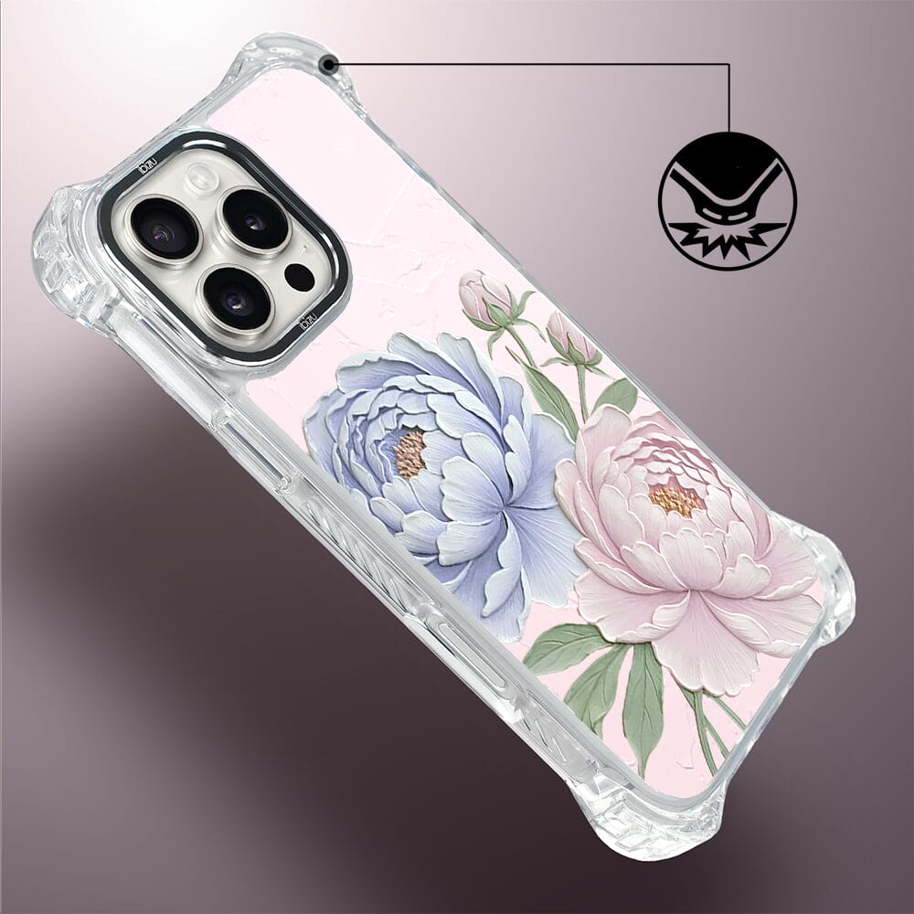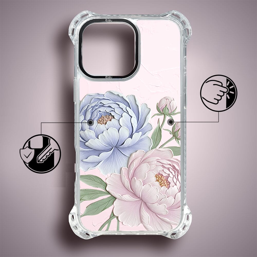 Etui do iPhone 16 Pro Max IBIZU DropGuard Ultra z MagSafe, Relief Garden, Piwoniowy róż