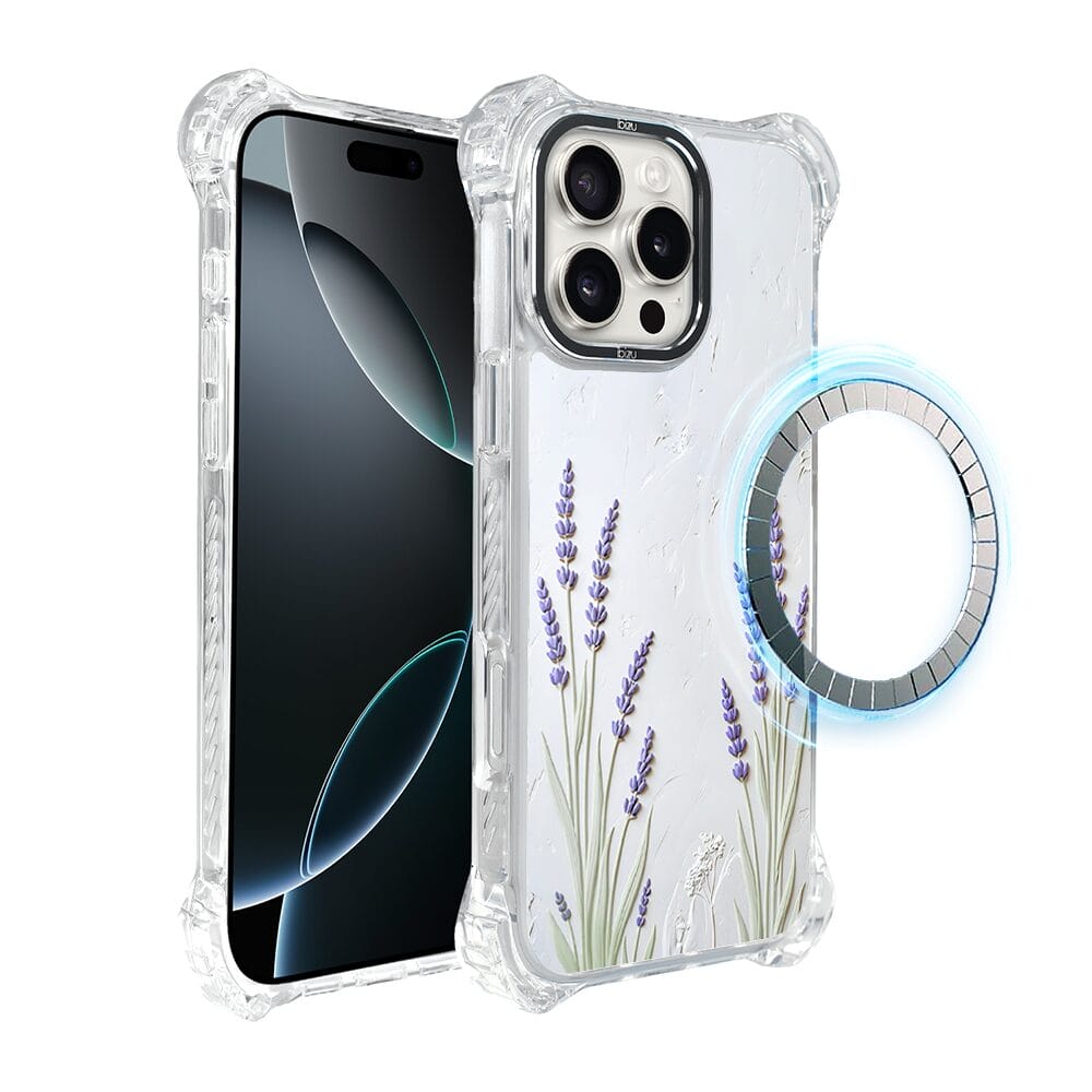 Etui do iPhone 16 Pro Max IBIZU DropGuard Ultra z MagSafe, Relief Garden, Prowansalska lawenda