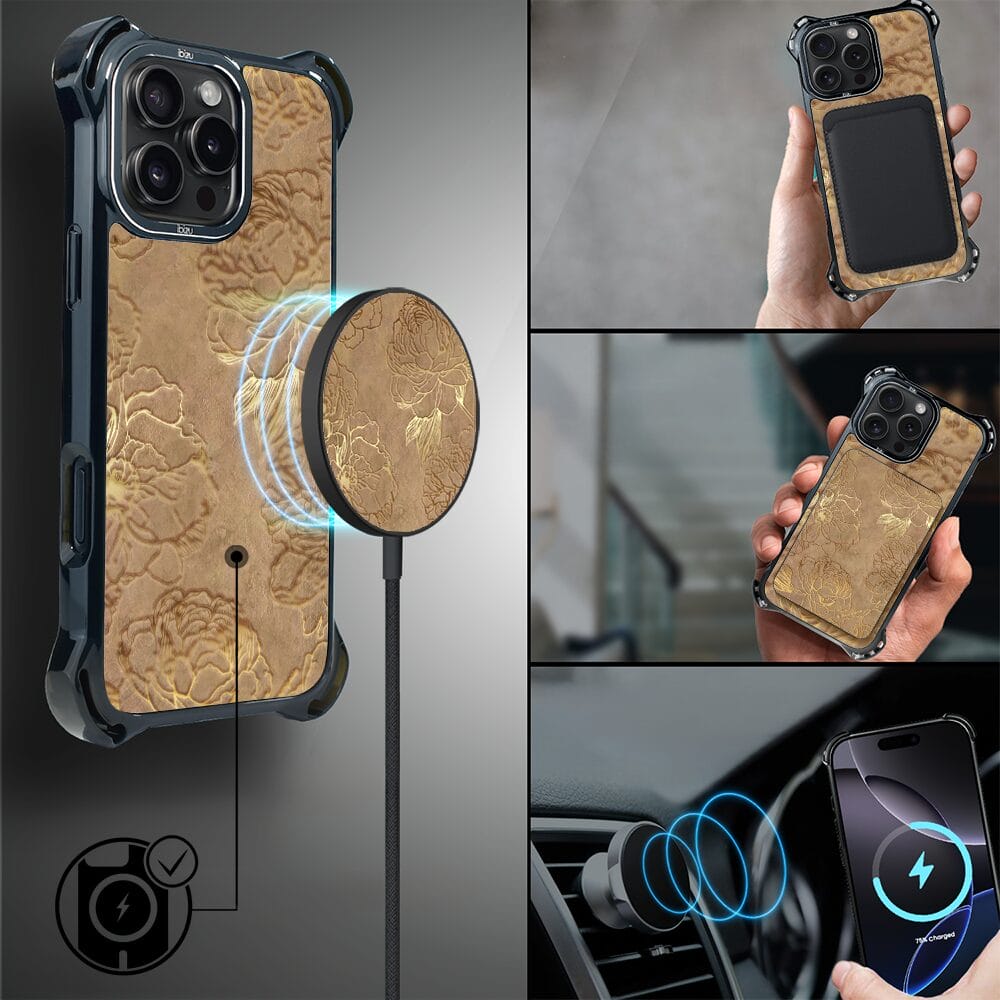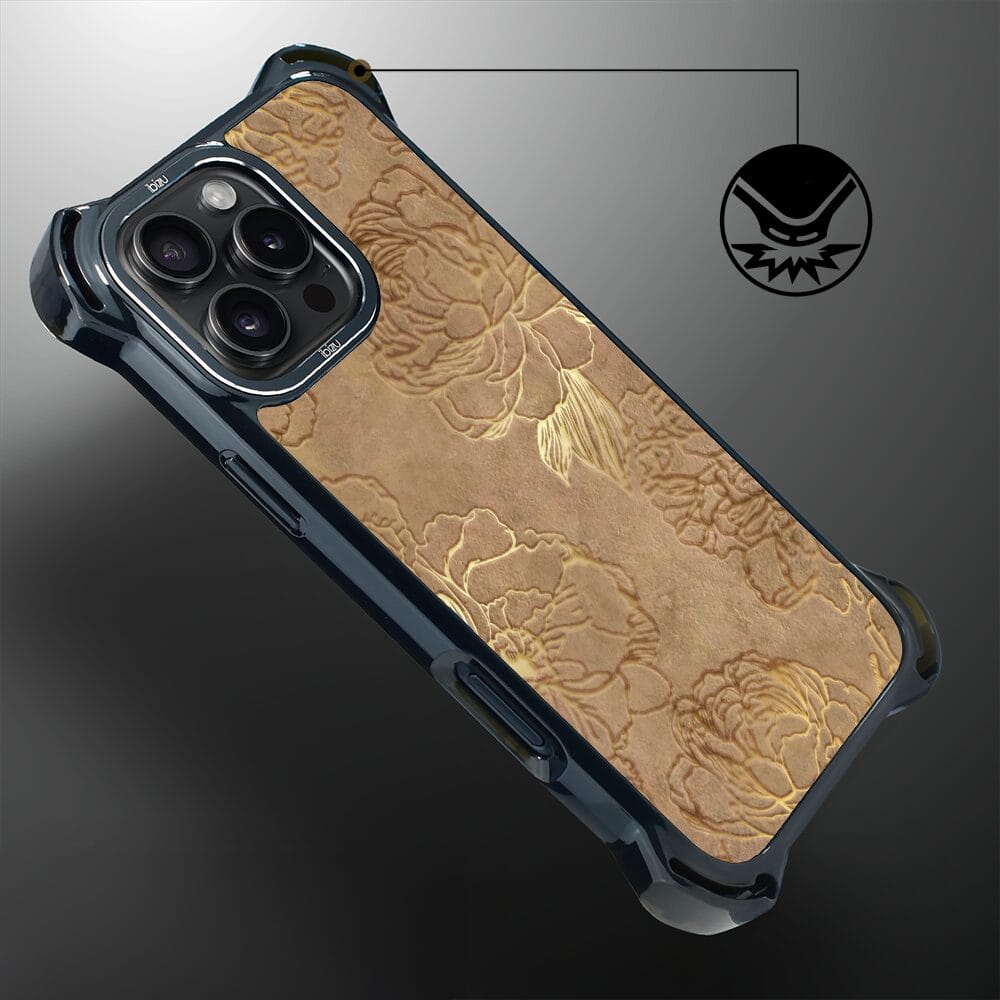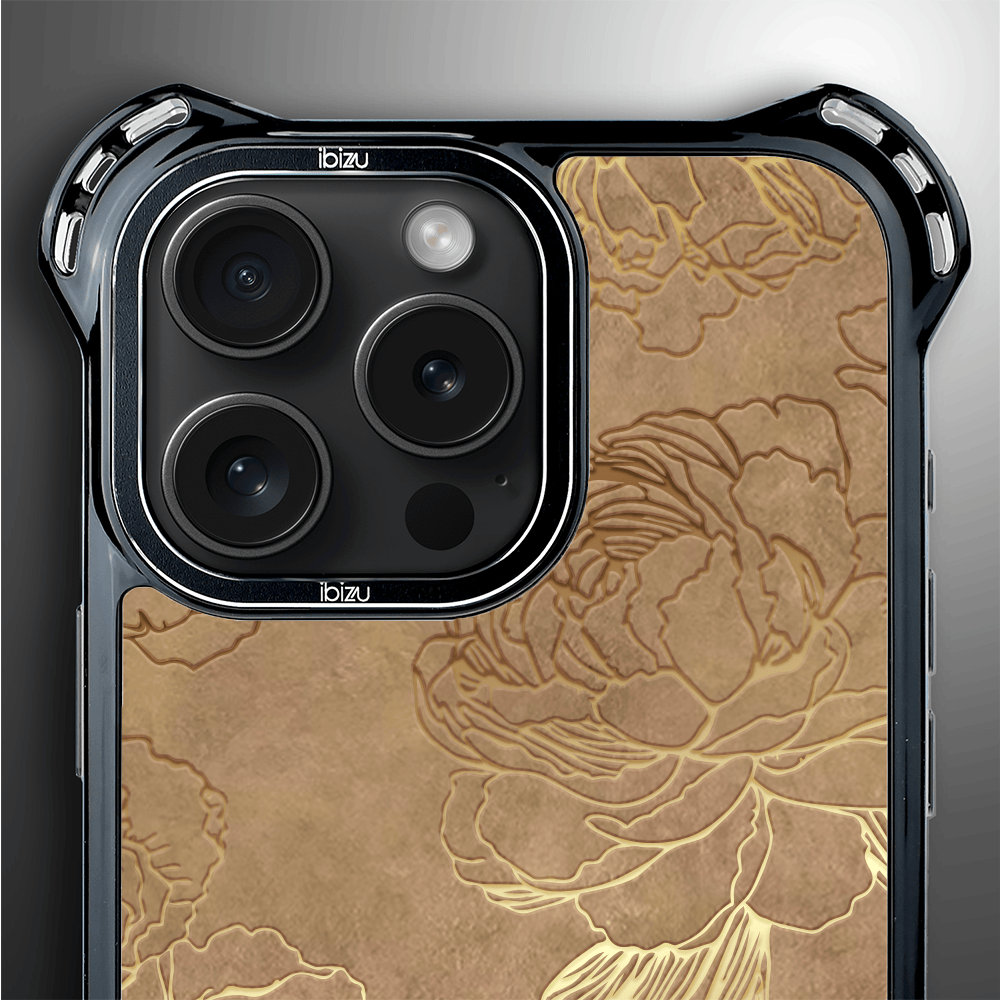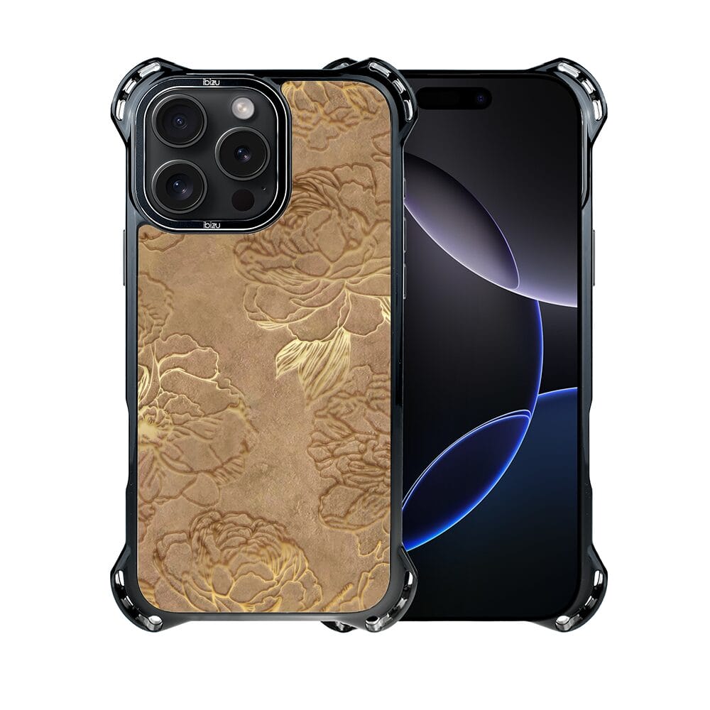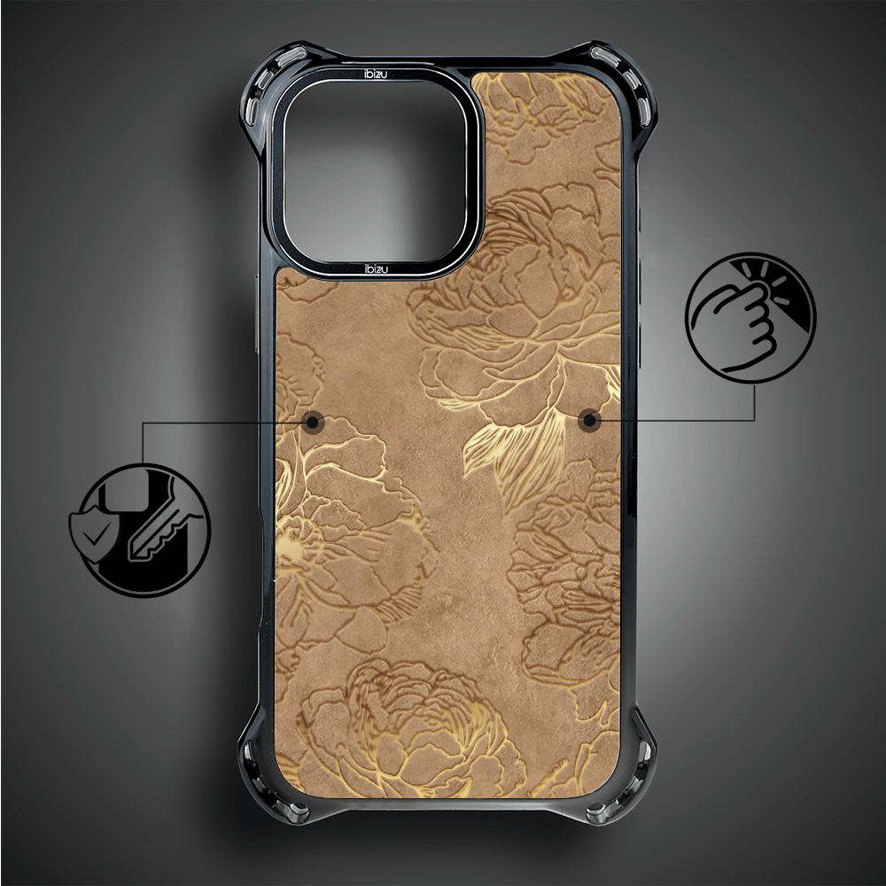 Etui do iPhone 16 Pro Max IBIZU DropGuard Ultra z MagSafe, Relief Garden, Złote piwonie