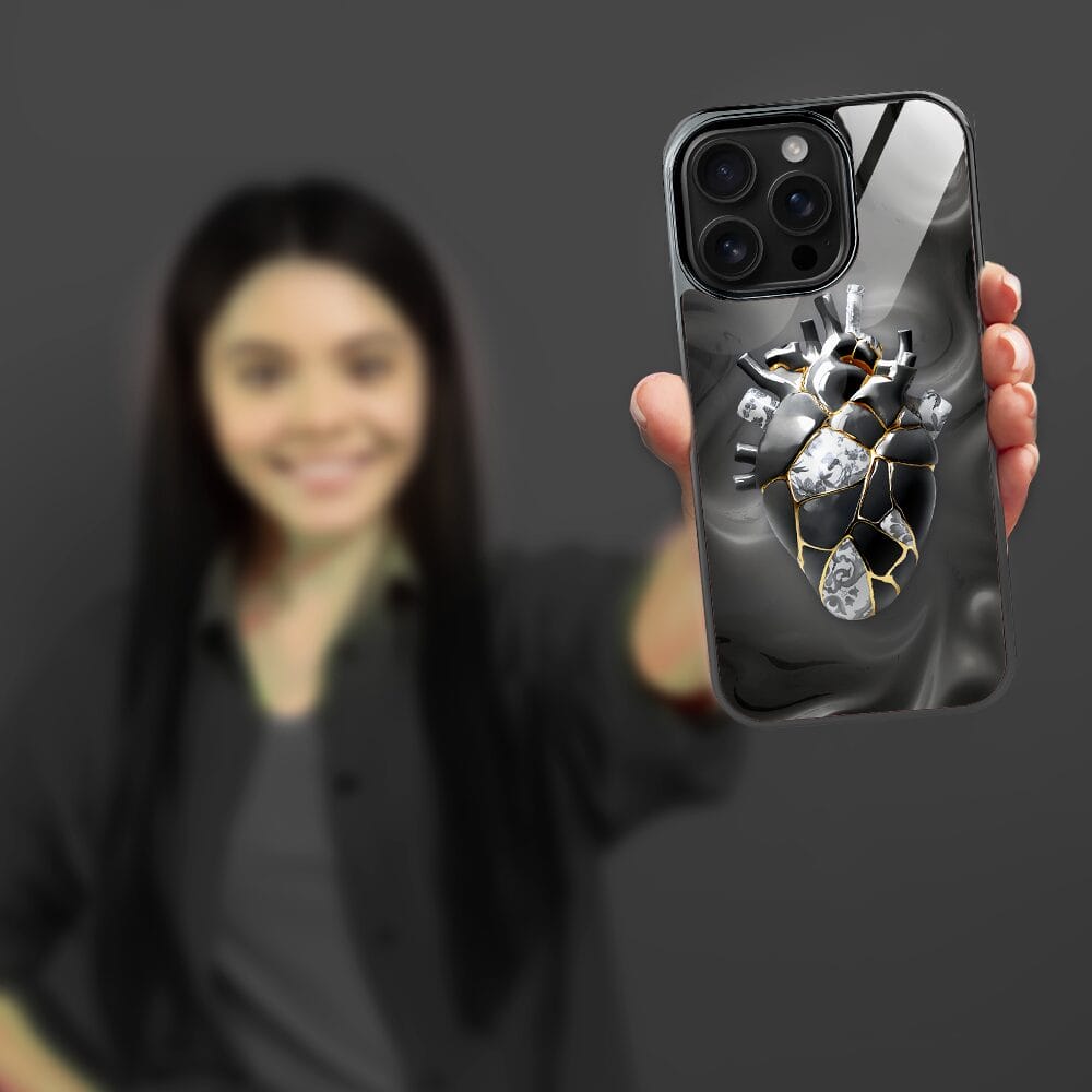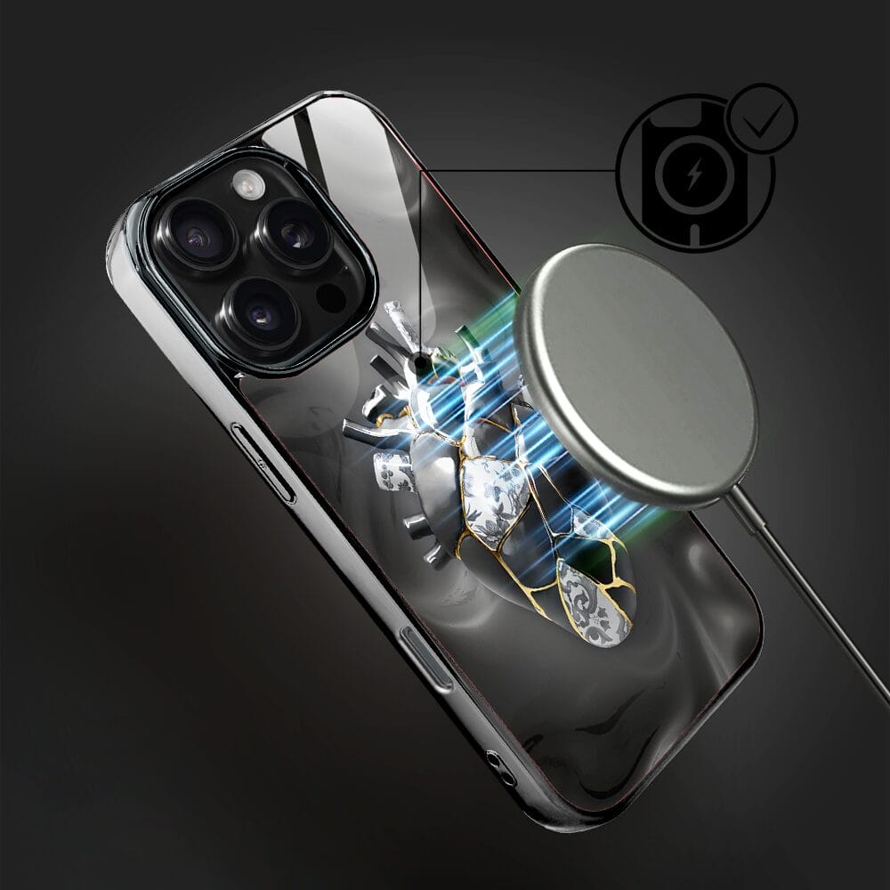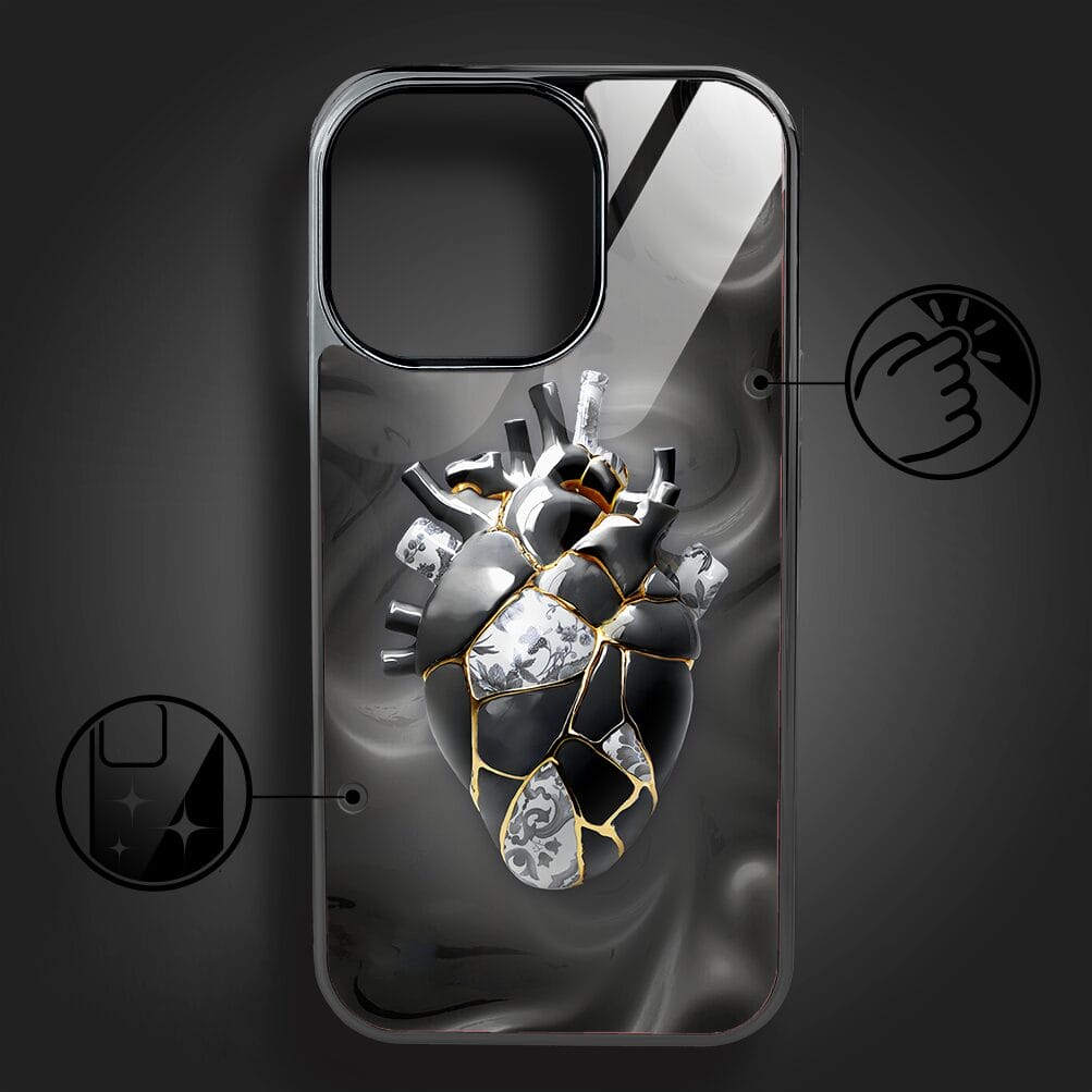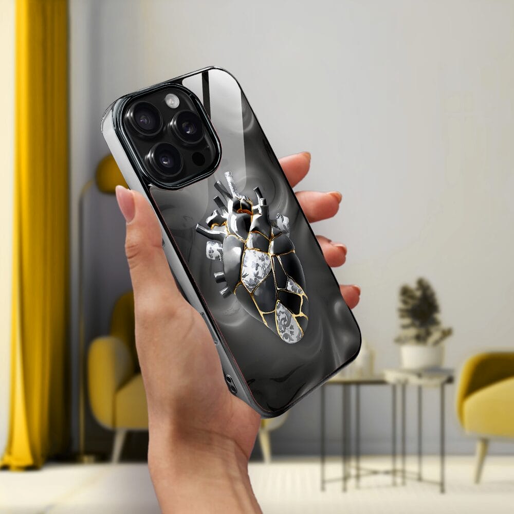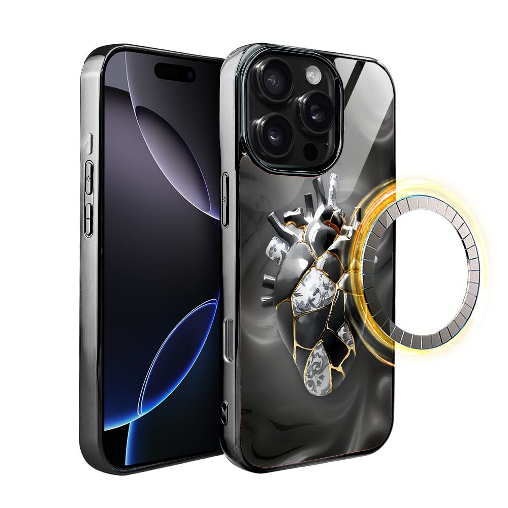 Etui do iPhone 16 Pro Max IBIZU Elite Glass z MagSafe, Kintsugi Art, porcelanowe serce, czarne