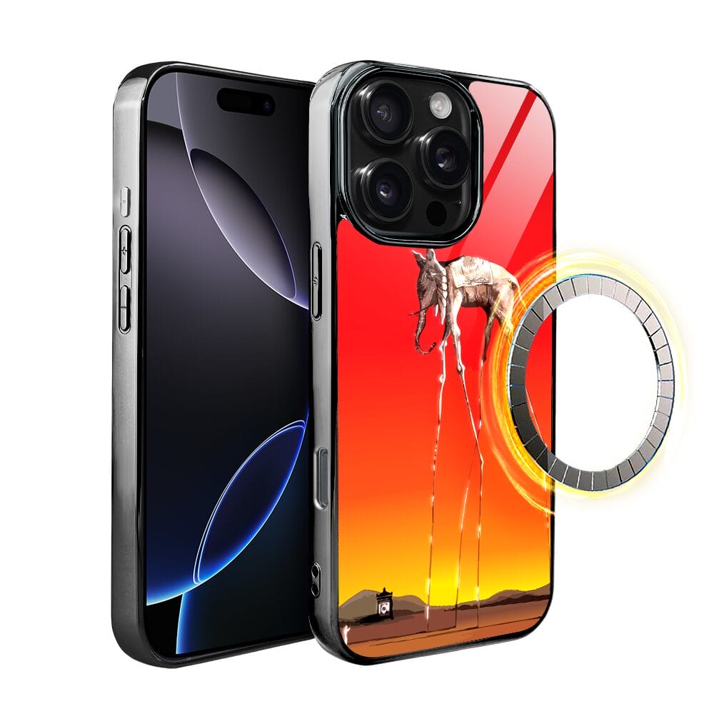 Etui do iPhone 16 Pro Max IBIZU Elite Glass z MagSafe, Salvador Dali, słoń, czarne
