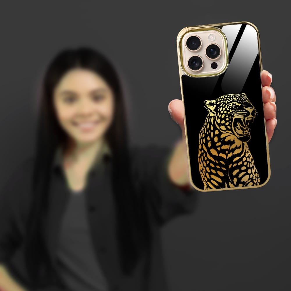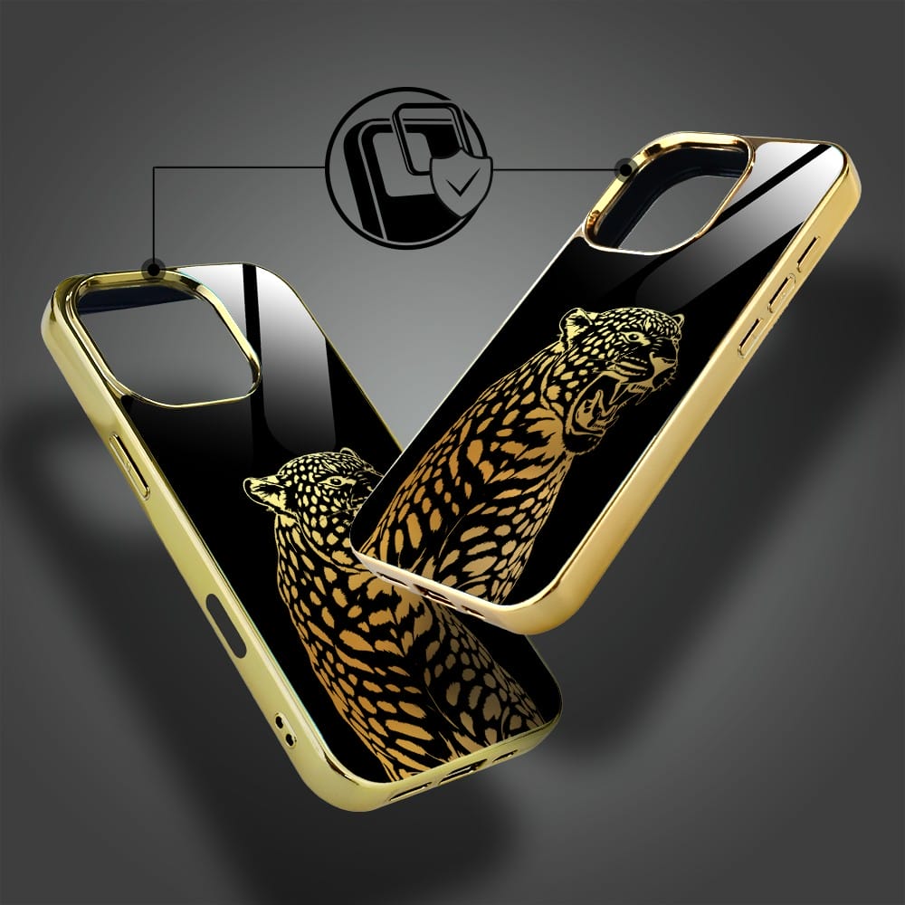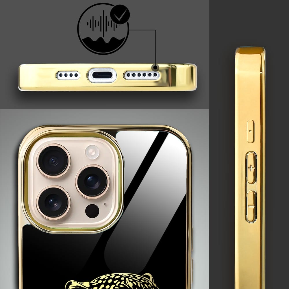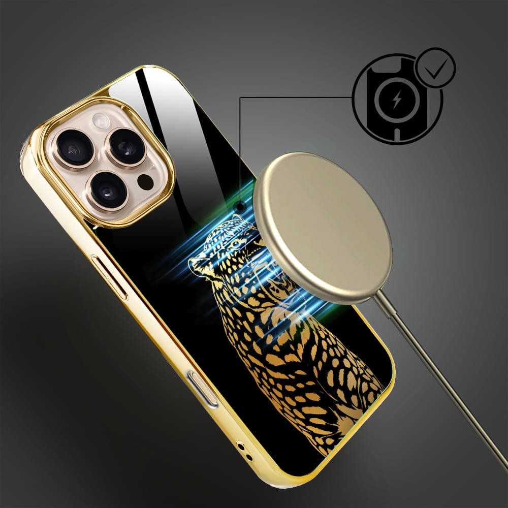 Etui do iPhone 16 Pro Max IBIZU Elite Glass z MagSafe Golden Midnight, Ryczący Jaguar, złote