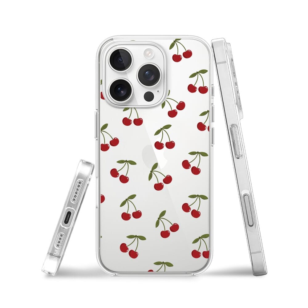 Etui do iPhone 16 Pro Max przeźroczyste, silikonowe Flexi, Mini Patterns, Wiśnie