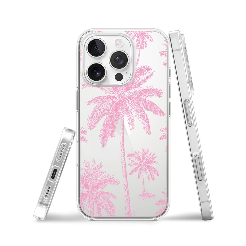 Etui do iPhone 16 Pro Max przeźroczyste, silikonowe Flexi, Mystic, Różowe palmy