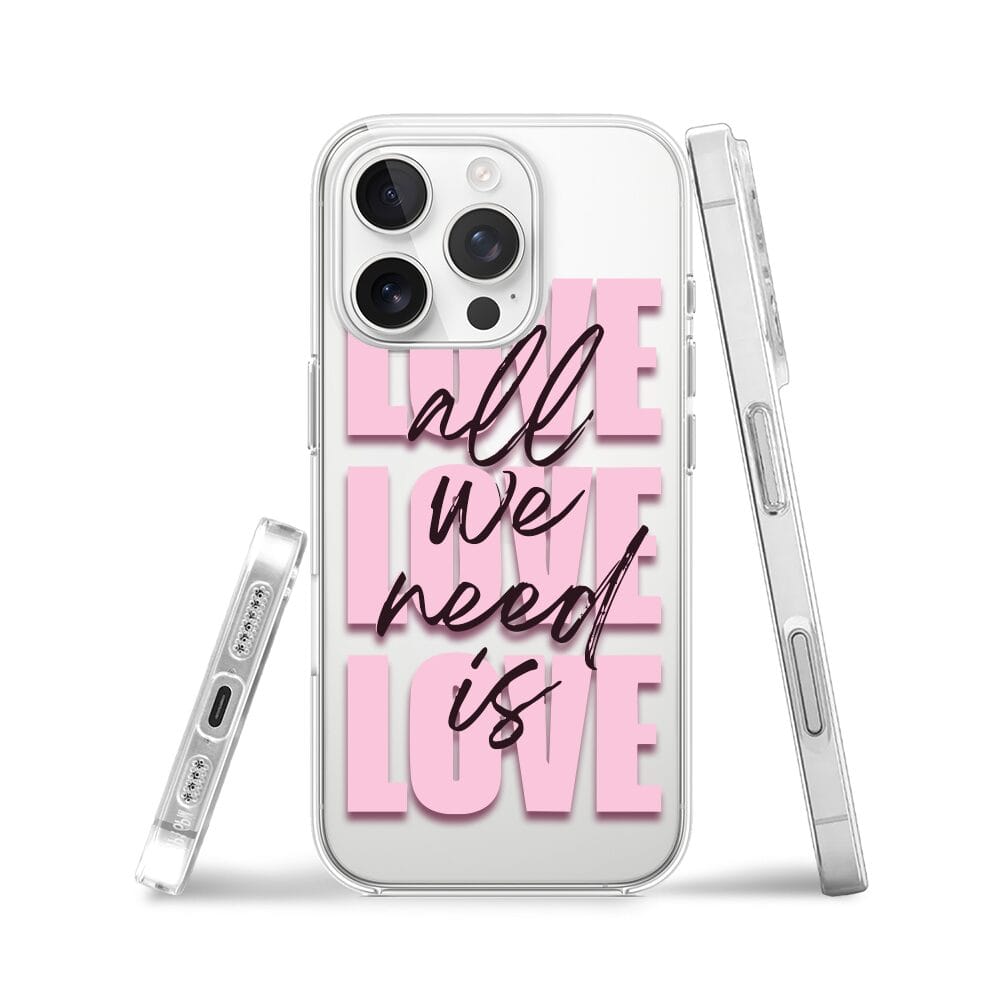Etui do iPhone 16 Pro Max przeźroczyste, silikonowe Flexi, Positive Vibes, All We Need Is Love