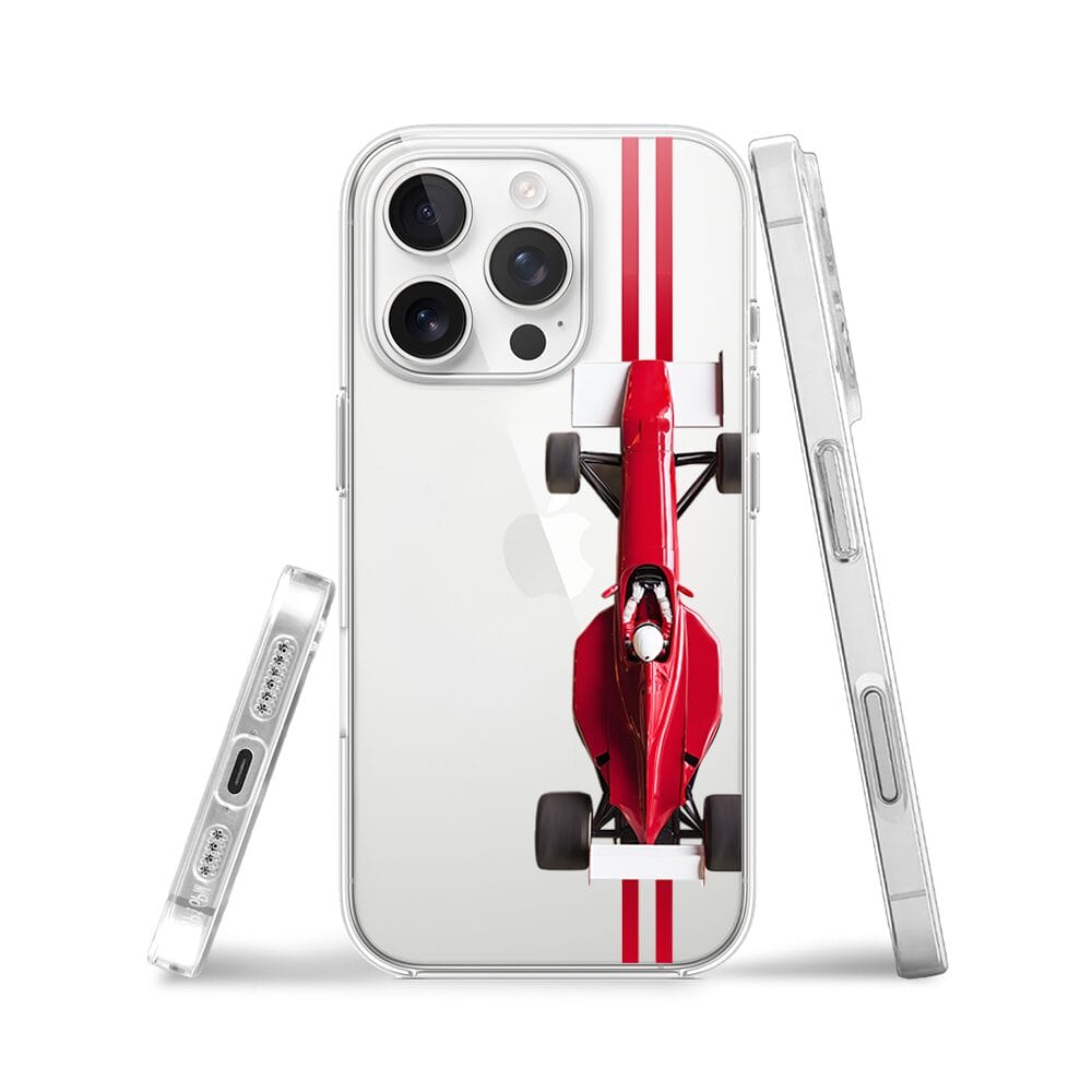 Etui do iPhone 16 Pro Max przeźroczyste, silikonowe Flexi, Szybkie Auta, czerwone F1