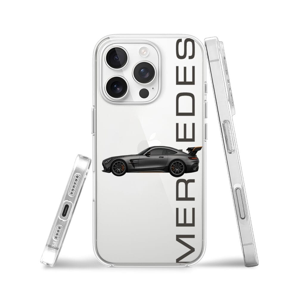 Etui do iPhone 16 Pro Max przeźroczyste, silikonowe Flexi, Szybkie Auta, Stalowe AMG-GT