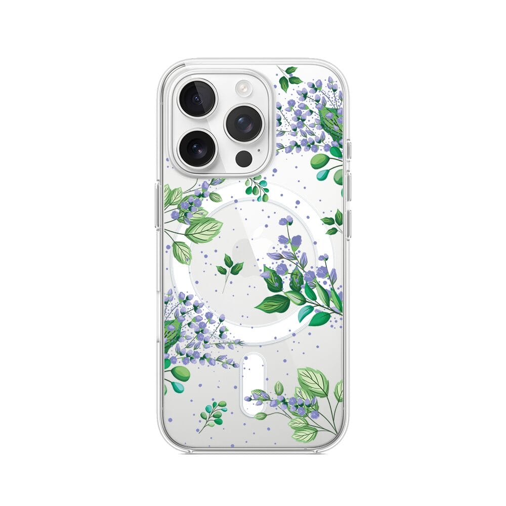Etui do iPhone 16 Pro Max z MagSafe przeźroczyste, silikonowe Flexi, fioletowe kwiatki