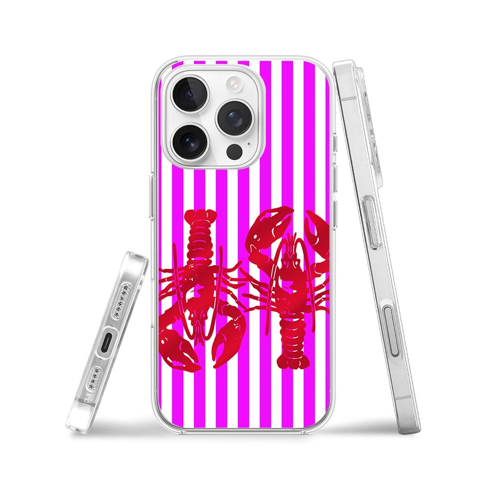 Etui do iPhone 16 Pro Max z MagSafe przeźroczyste, silikonowe Flexi, kraby z różowymi paskami