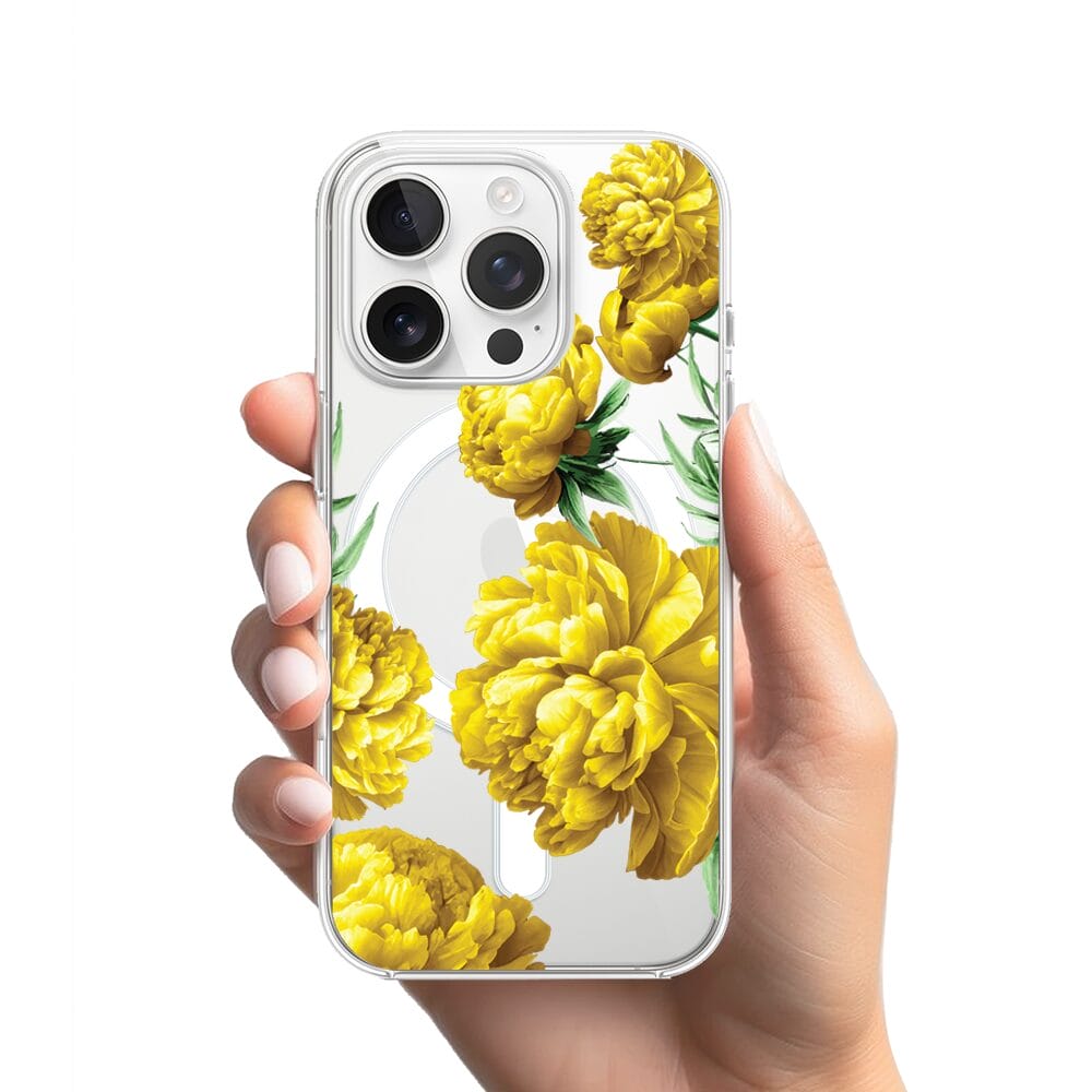 Etui do iPhone 16 Pro Max z MagSafe przeźroczyste, silikonowe Flexi, żółte piwonie