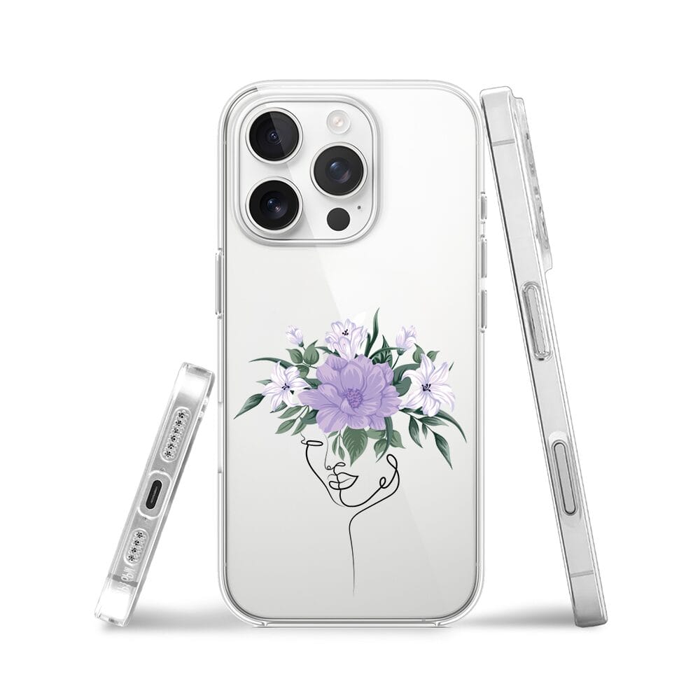 Etui do iPhone 16 Pro przeźroczyste, silikonowe Flexi, kobieta z kwiatami