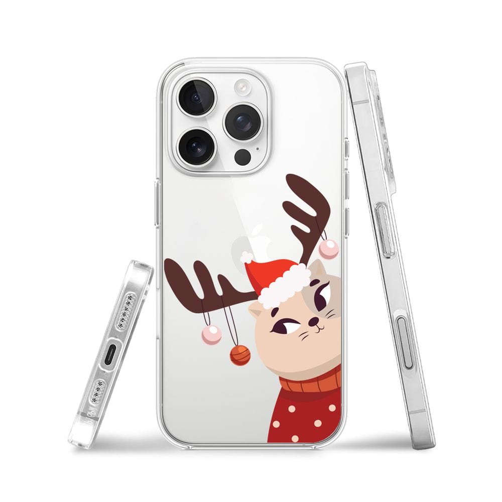 Etui do iPhone 16 Pro przeźroczyste, silikonowe Flexi, Kotek przebrany za reniferka