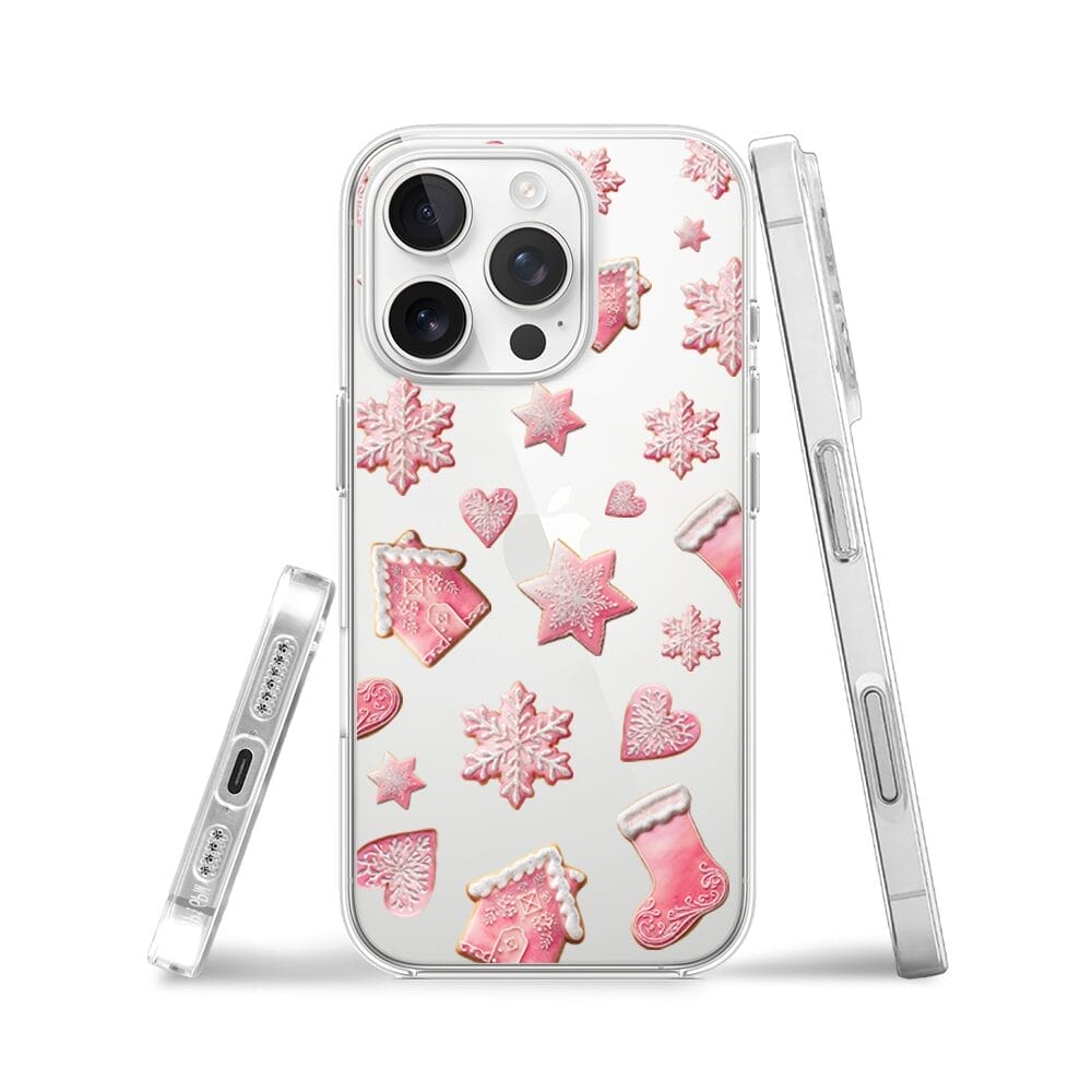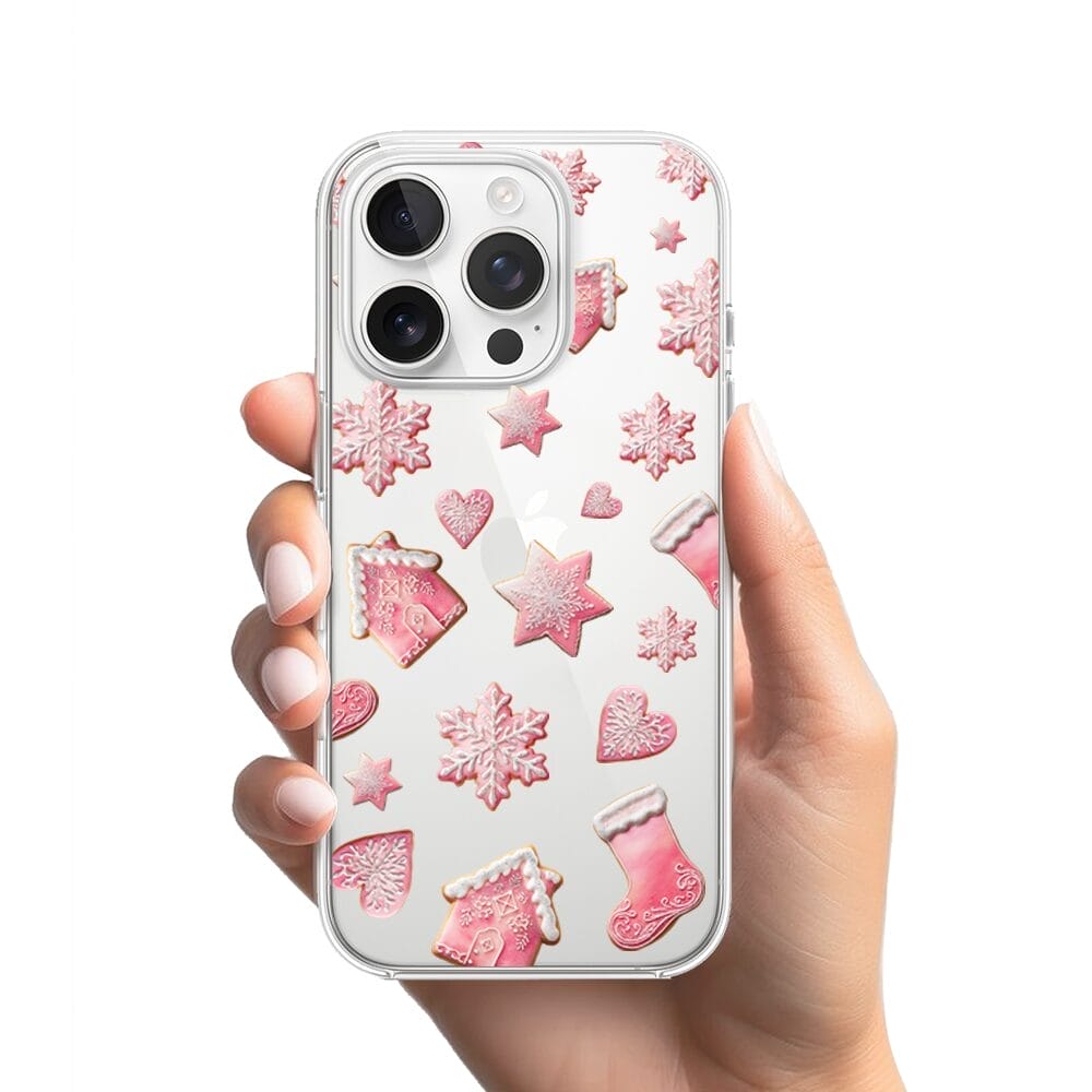 Etui do iPhone 16 Pro przeźroczyste, silikonowe Flexi, Przytulne święta, Różowe pierniczki