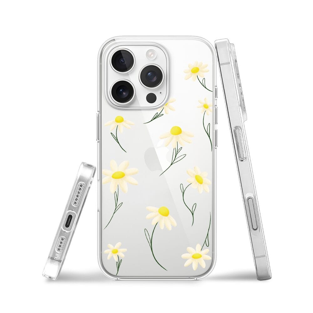 Etui do iPhone 16 Pro przeźroczyste, silikonowe Flexi, stokrotki