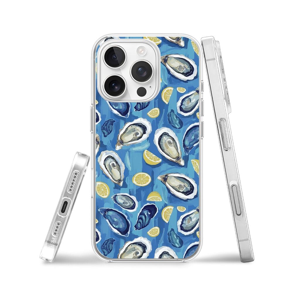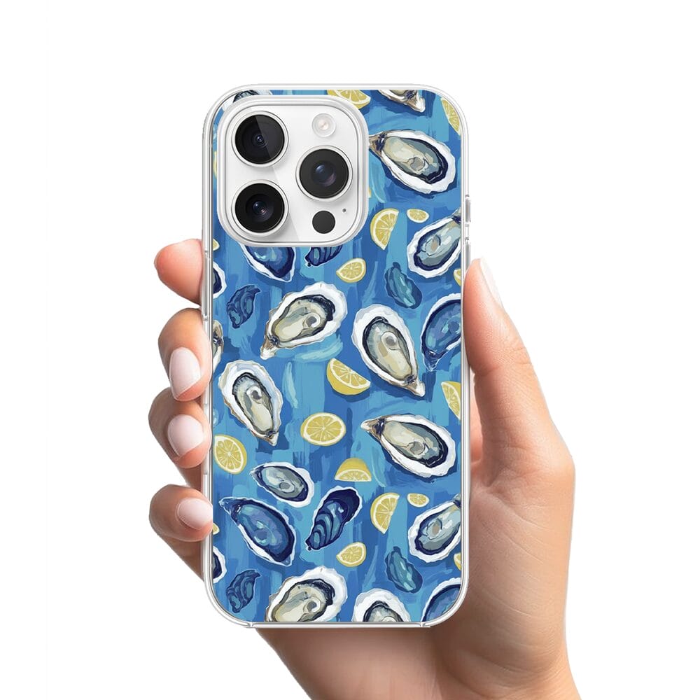 Etui do iPhone 16 Pro przeźroczyste, silikonowe Flexi, Summer Patterns, ostrygi z cytrynką